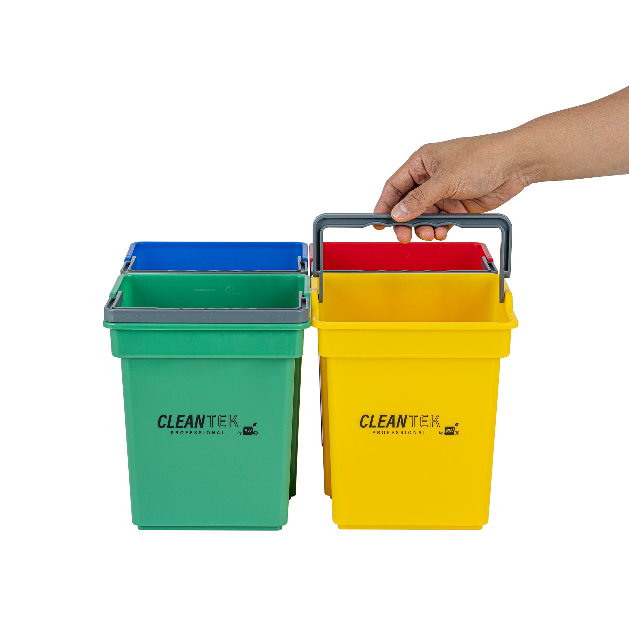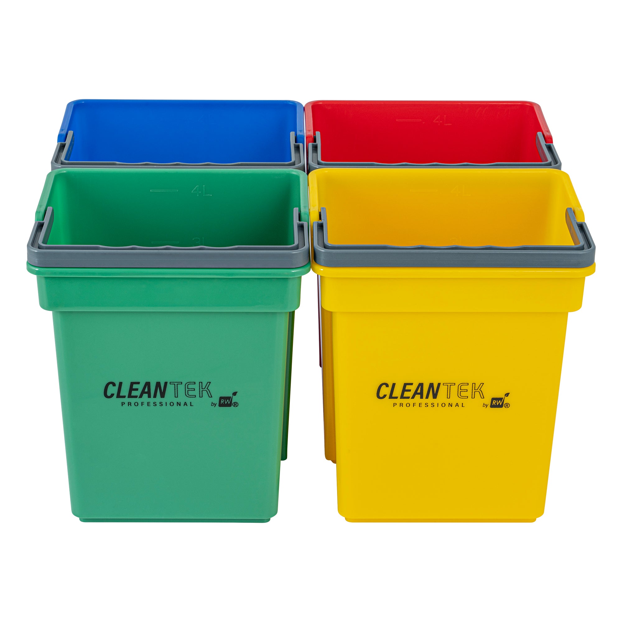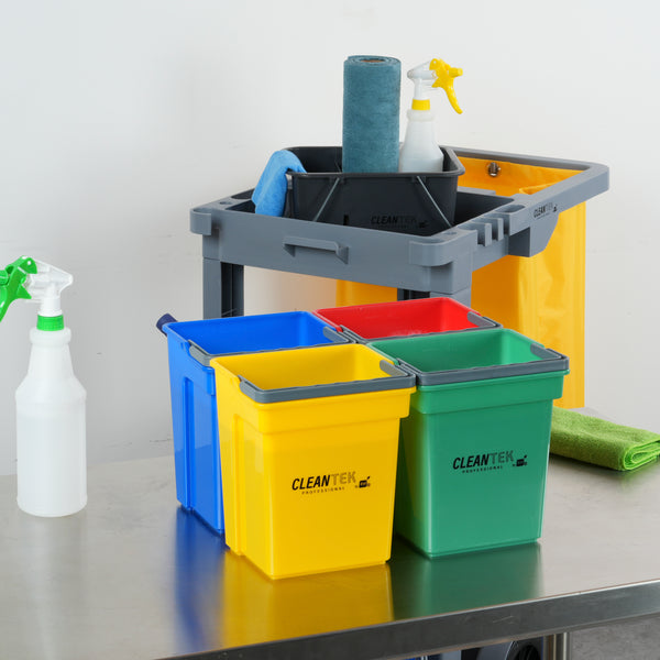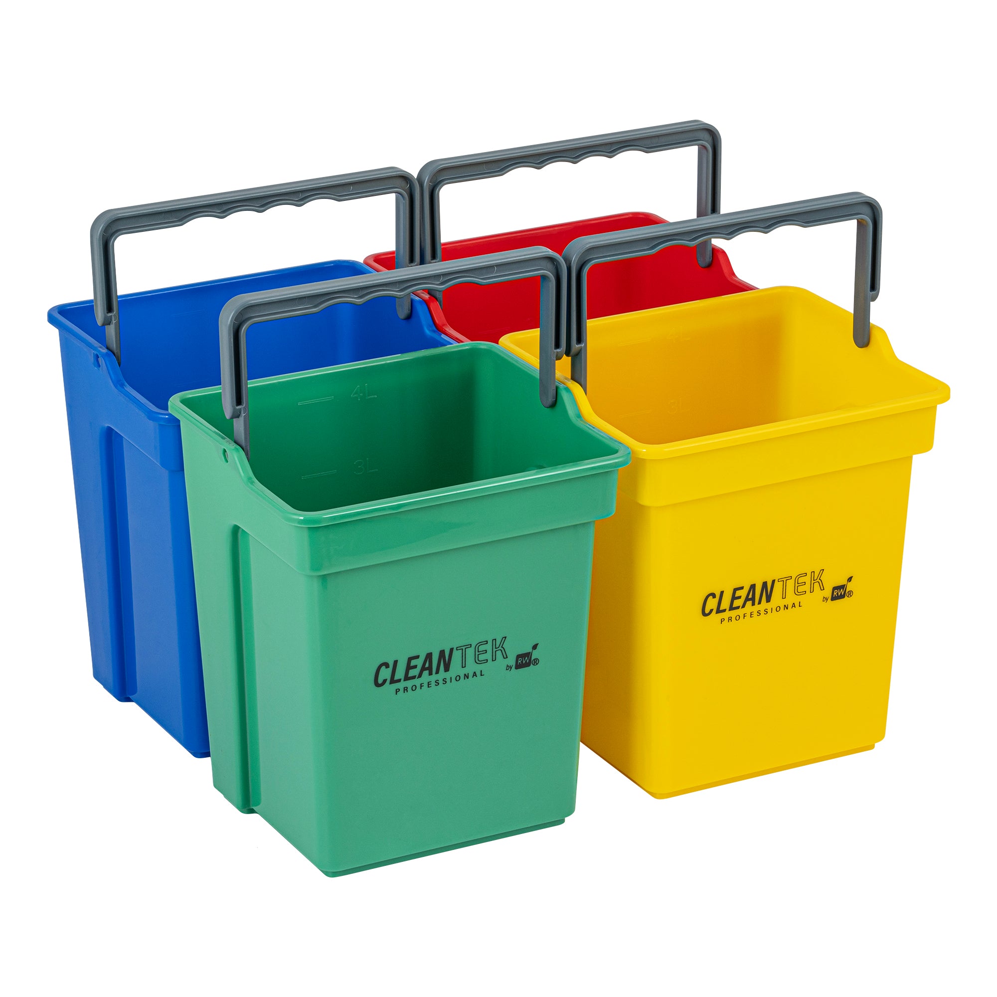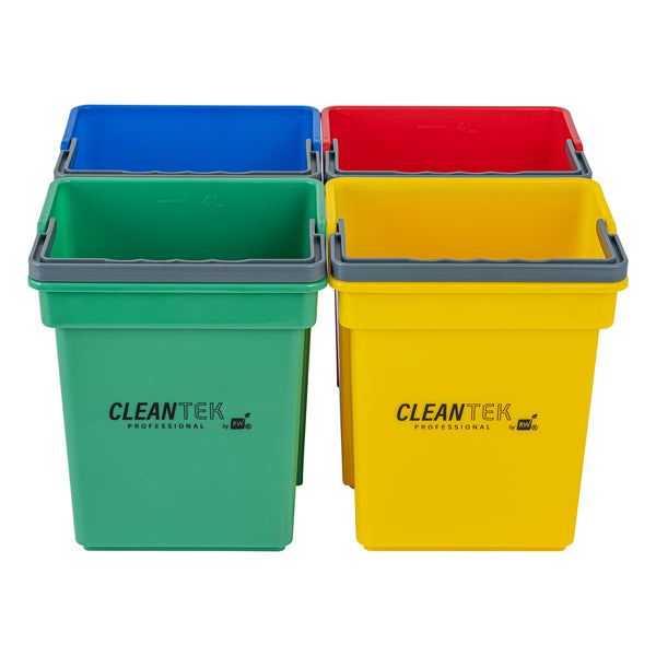 4 QT GREEN, BLUE, RED AND YELLOW CLEANING BUCKETS