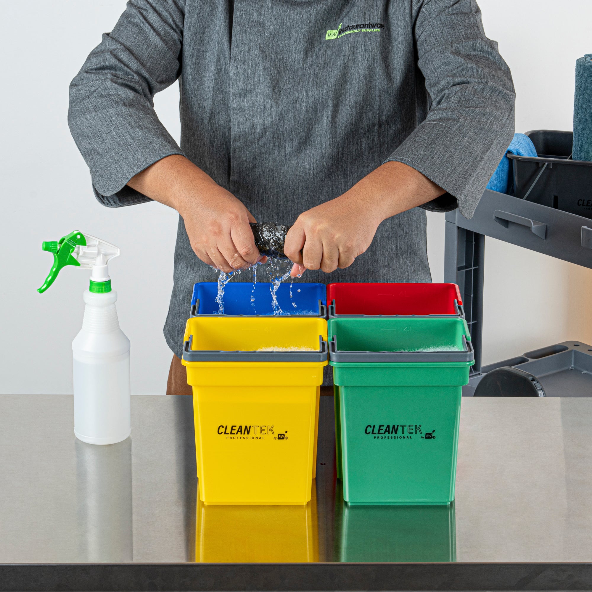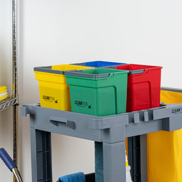 Ensure hygienic cleaning with our versatile color-coded solution. The RW Clean Color-Coded Compact Plastic Cleaning Bucket features vibrant colors that reduce misplacement and mix-ups, enhancing organization in busy environments. Its durable plastic construction withstands heavy use, making it a reliable commercial cleaning bucket for rigorous daily tasks. An ergonomic handle design provides a comfortable grip, allowing easy carrying and maneuverability, ideal for professionals managing extensive cleaning routines. With a compact 4-quart capacity, this cleaning pail for sanitation is perfect for small to medium tasks without occupying excessive storage space, ensuring efficient use in crowded kitchens or janitorial storage areas. Implement this tool to elevate your sanitation standards and streamline cleaning protocols. Each order includes 1 RW Clean Color-Coded Compact Plastic Cleaning Bucket.