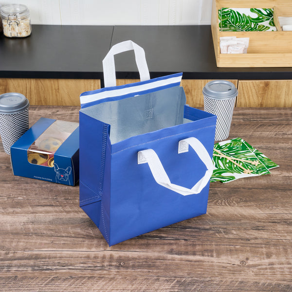 Ensure optimal food quality with these tamper-evident bags. The Bag Tek Nonwoven Insulated Food Delivery Bags feature advanced insulation technology that maintains the temperature of food items, ensuring they remain hot or cold during transit. These insulated food delivery bags have a spacious design, measuring 9.4 inches in length, 5.9 inches in width, and 10.2 inches in height, allowing them to accommodate large orders and bulk items efficiently. Made from nonwoven material, these thermal food delivery bags are lightweight, reusable, and easy to clean, enhancing their practicality for various foodservice applications. The sturdy handles provide easy and stable transport, making them ideal for restaurants and catering services looking to improve delivery efficiency and customer satisfaction. Upgrade your takeout service with these versatile reusable delivery bags. Each order includes 100 Bag Tek Nonwoven Insulated Food Delivery Bags.