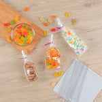 Elegantly display your delicious snacks with our Bag Tek Clear Plastic Gusset Bags. These snack packaging bags have exceptional clarity to showcase fare in the display windows of your bakery or candy shop. Perfect for powdered candy, these snack packaging bags are heat sealable to securely package your confectionary to prevent spills and messes. Featuring a gusset design, these clear food packaging bags fit treats of many different sizes. Made from premium plastic, these candy packaging bags are recyclable to shorten the cleaning process at your food service establishment. These gusset plastic bags measure 3 inches long by 1.25 inches wide by 8.25 inches tall. Use our impulse sealer (SKU: RWT0243 or RWT0244) to lock in freshness. Sold in a 100 count box.