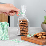 Keep your baked goods secure and fresh with our Bag Tek Green Stripe Paper Twist Ties / Bag Ties. Designed with a laminated green stripe exterior and flush-cut ends, these twist ties are ideal for foodservice operations that require clean, reliable sealing. Built with a sturdy iron wire core, they provide dependable closure to preserve freshness, perfect for bakeries, delis, or grab-and-go setups. The green-striped finish adds a pop of color and quick identification while complementing a variety of packaging styles. These versatile 4-inch twist ties are great for sealing bread bags, candies, baked goods, or even small gifts and party favors. Sold in a 50,000 count box.