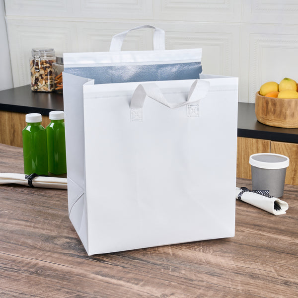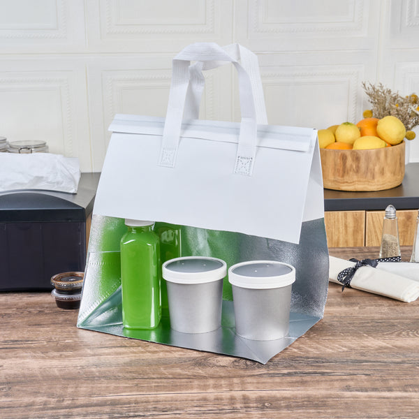 WHITE INSULATED TAKE OUT BAG - TAMPER-EVIDENT
