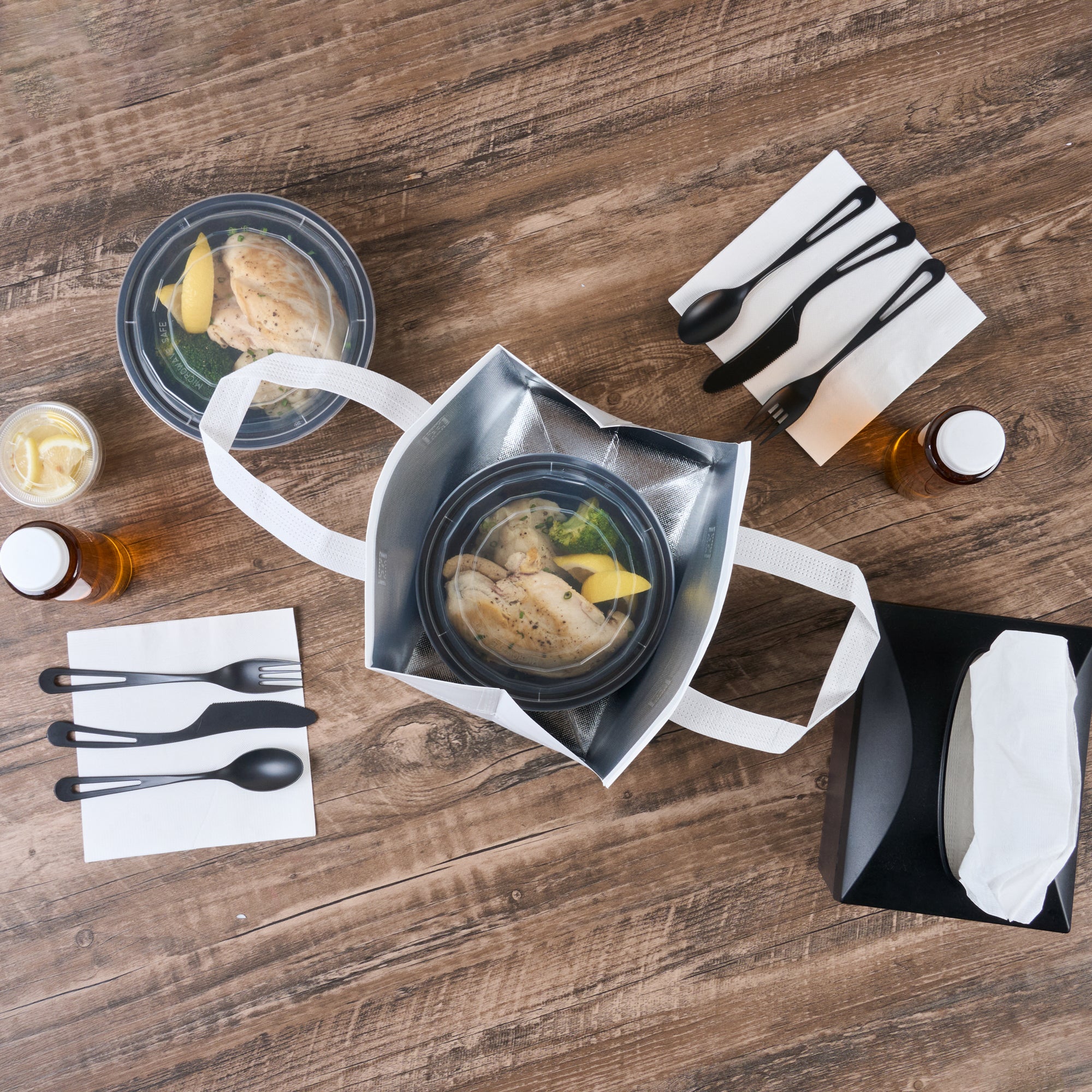 Ensure perfect deliveries every time with leak-resistant packaging. Bag Tek Insulated Food Delivery Bags offer an advanced insulation technology that maintains the temperature of your culinary creations for hours, ensuring they arrive hot or cold as intended. The tamper-evident design of these thermal delivery bags provides a clear indication if the bag has been opened, safeguarding the integrity of your dishes. Constructed with a spacious interior measuring 9.4 inches in length, 5.9 inches in width, and 10.2 inches in height, these reusable delivery bags accommodate a variety of container sizes, making them ideal for diverse menu offerings. Crafted from nonwoven material with an insulated lining, these bags are not only durable but also recyclable, supporting your sustainability goals. Lightweight and foldable, they are easy to store and transport, enhancing operational efficiency for busy foodservice professionals. Each order includes 100 Bag Tek Insulated Food Delivery Bags.