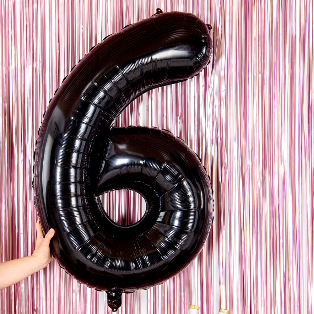 BLACK MYLAR NUMBER 6 BALLOON