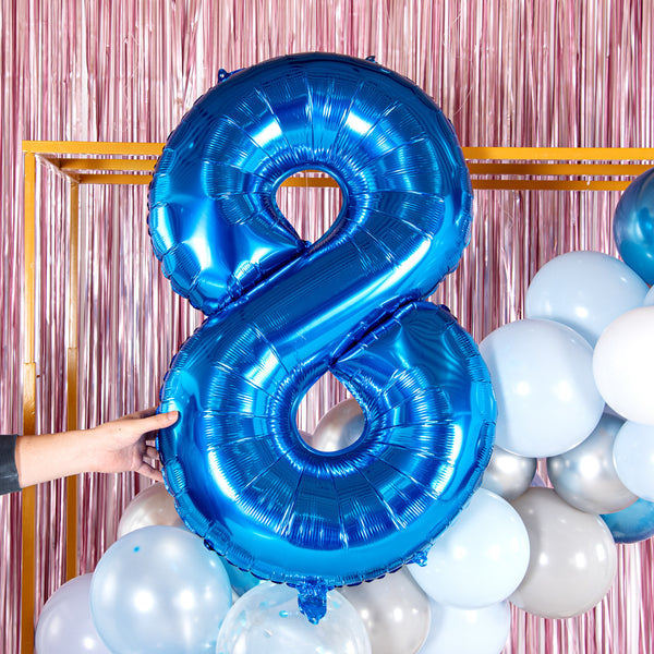 BLUE MYLAR NUMBER 8 BALLOON