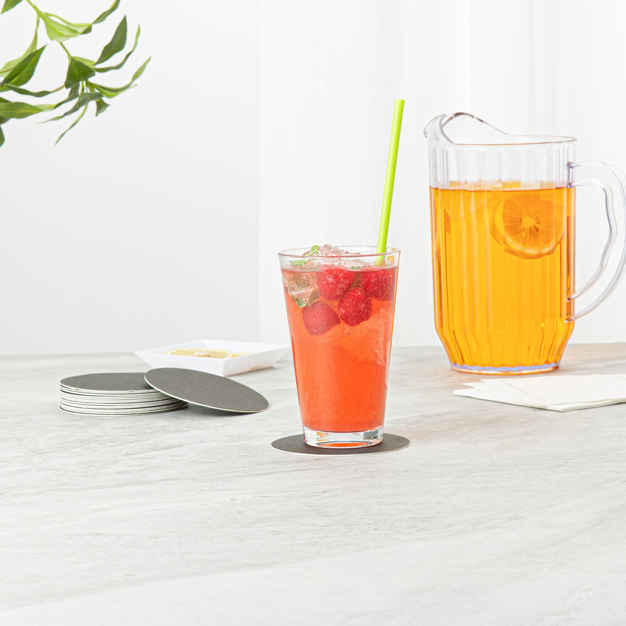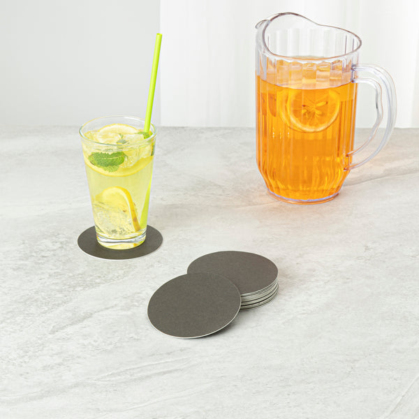Elevate your tabletop presentation with versatile protection. Bar Lux Round Black Paper Coasters are crafted from premium paper, offering a disposable solution that shields surfaces from condensation and spills, enhancing both functionality and aesthetics. Designed with a high-density water-absorbent board, these absorbent paper coasters dry faster than ordinary options, ensuring superior performance in high-traffic environments. The coasters' tear-resistant design withstands frequent use, making them ideal disposable bar coasters for busy bars and lounges. Measuring 3.5 inches in diameter, they accommodate a wide range of glassware sizes, providing versatility for all your drink offerings. Additionally, the full-color printing option allows you to enhance branding on bar counters, creating a customized and cohesive look. Embrace efficiency and style with these reusable drink coasters that simplify cleanup while maintaining an elegant ambiance. Each order includes 1000 Bar Lux Round Black Paper Coasters.