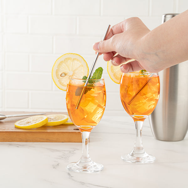 Experience elegance and eco-friendliness with our Bar Lux Stainless Steel Straws. Crafted from premium food-grade stainless steel, these reusable straws showcase a chic design, offering a luxurious touch to your beverage ensemble. Being reusable, a swift hand wash is all they need for countless uses. With these gold-plated straws, contribute to a greener planet by reducing waste. These reusable stainless steel straws measure 5 inches in length and are perfectly designed to fit snugly into short glasses, uplifting the charm of your carefully mixed drinks. Sold in a 2 count box.