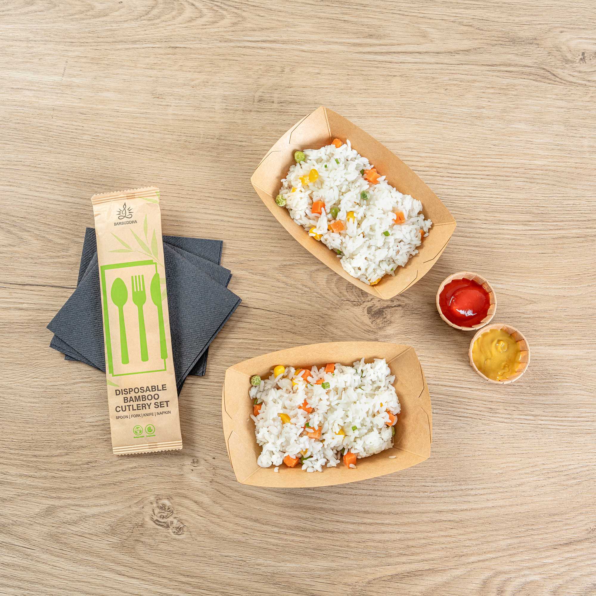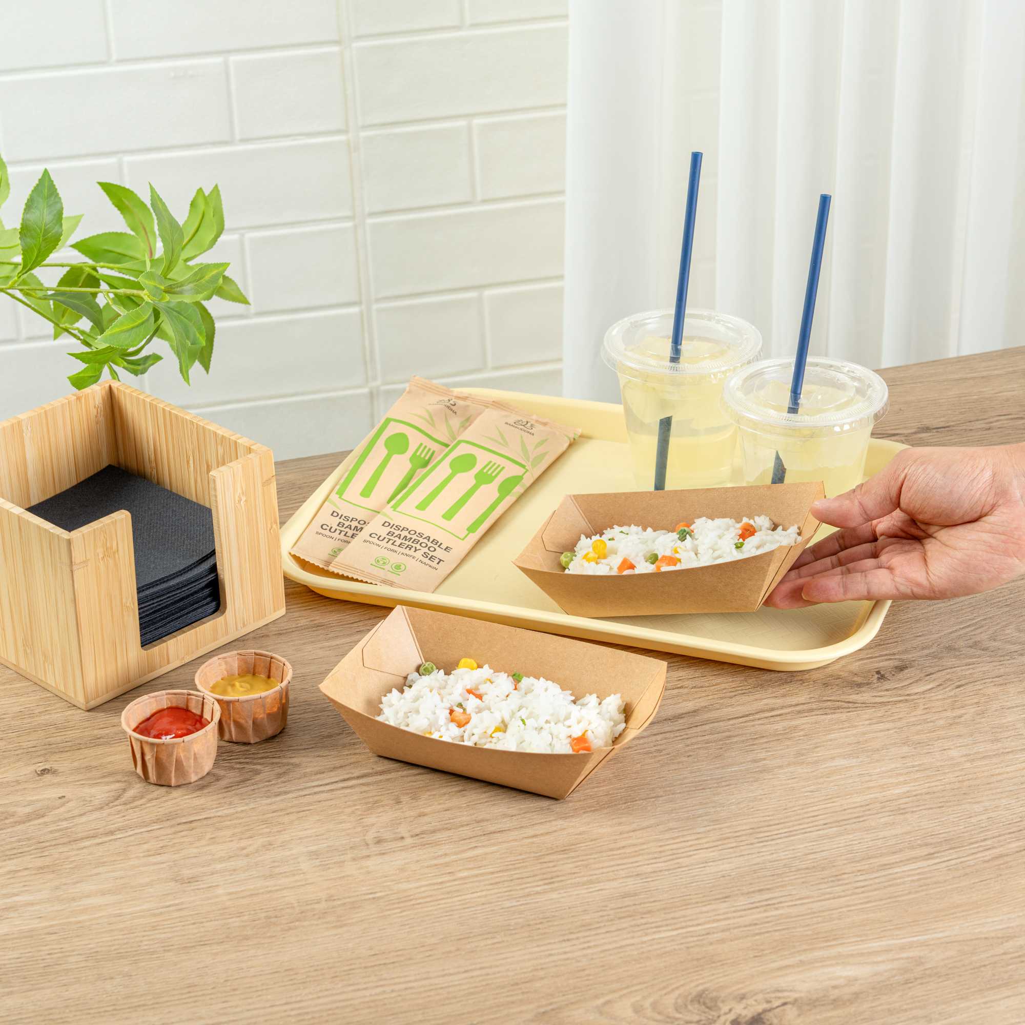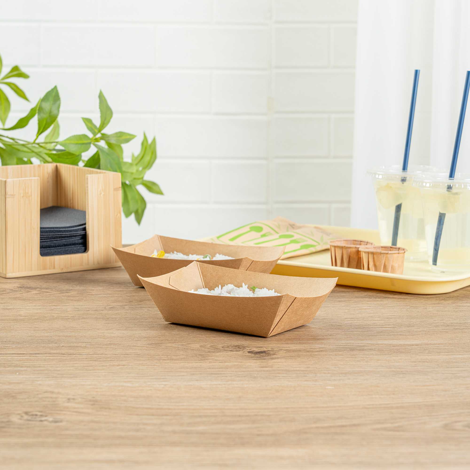 For a simple cleaning process for establishments and guests, these paper food boats are sustainably disposable. Reduce your impact on the environment!