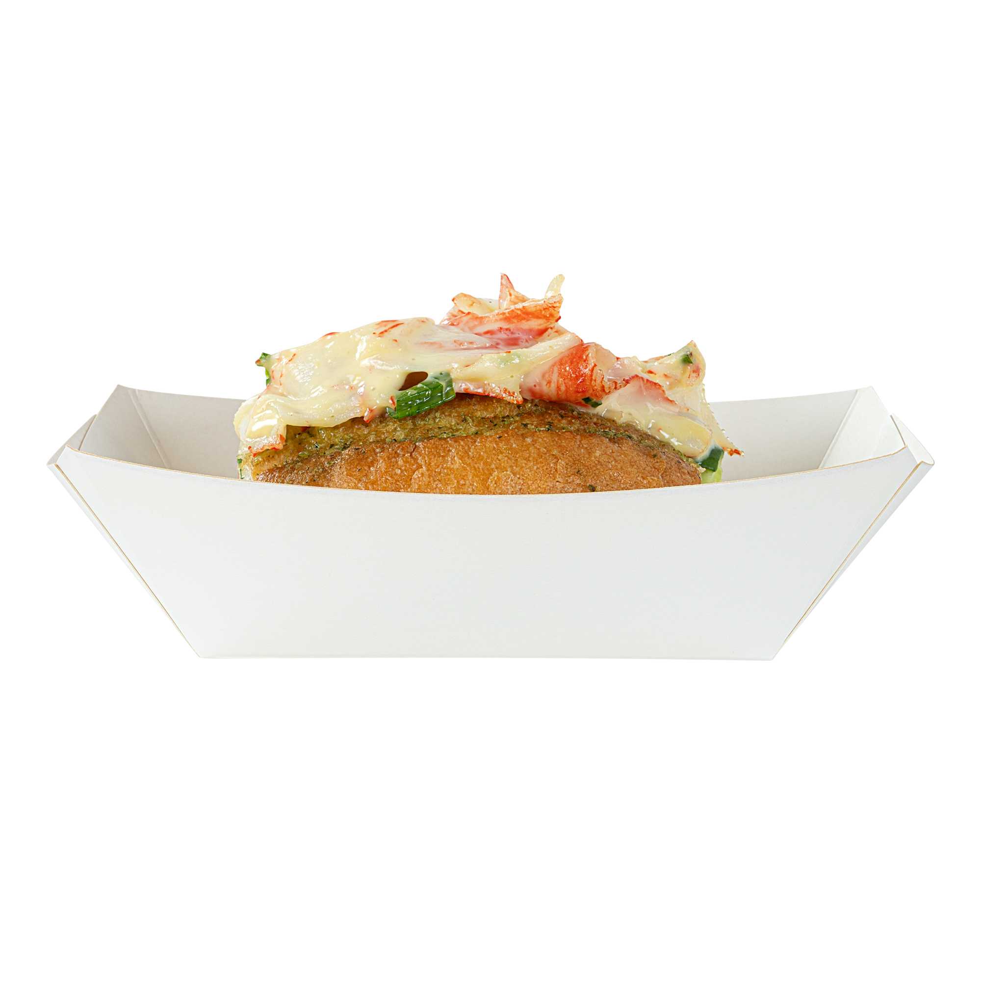 These paper burger trays have a tough PE lining to avoid oils or grease from seeping through. Great for serving french fries or crispy chicken wings!
