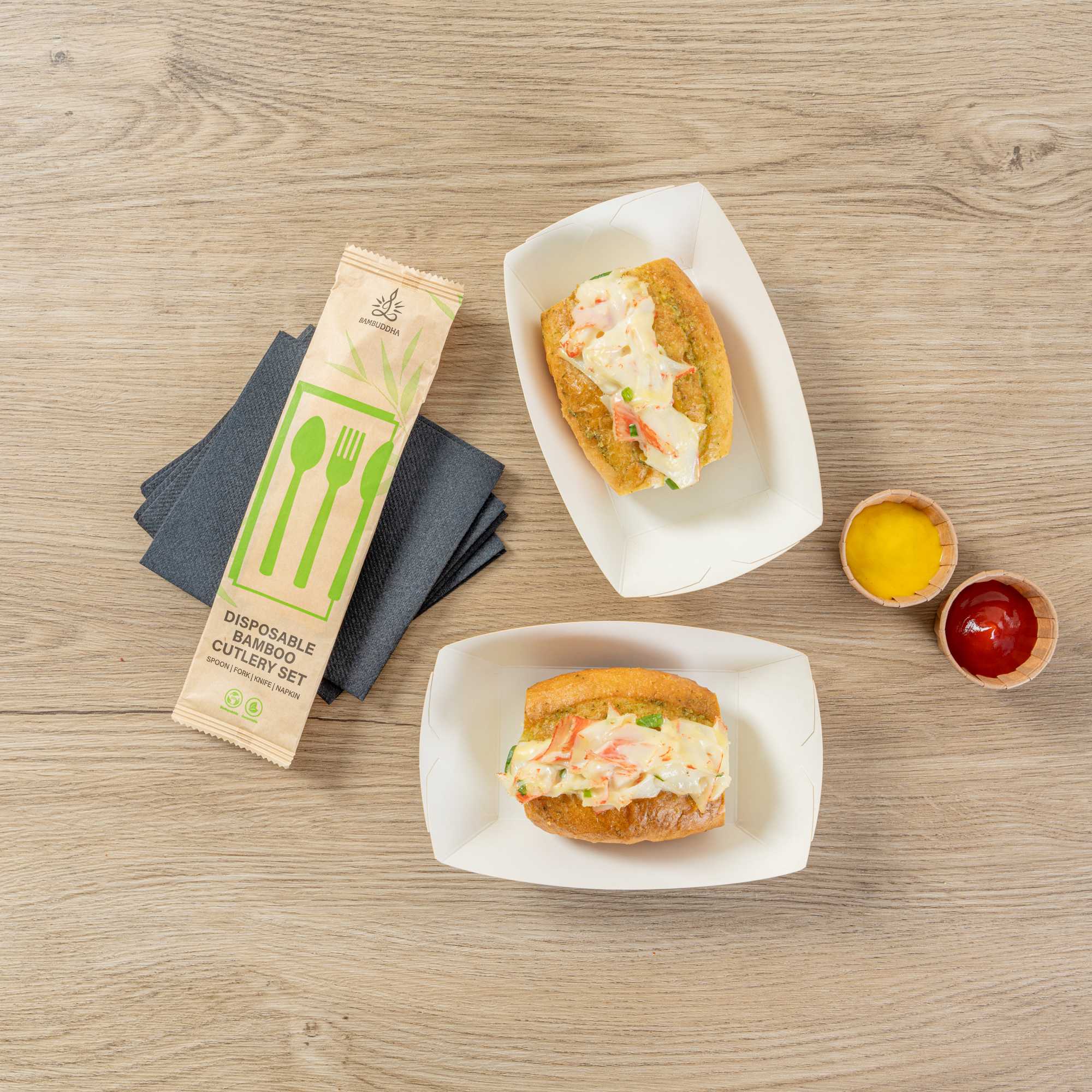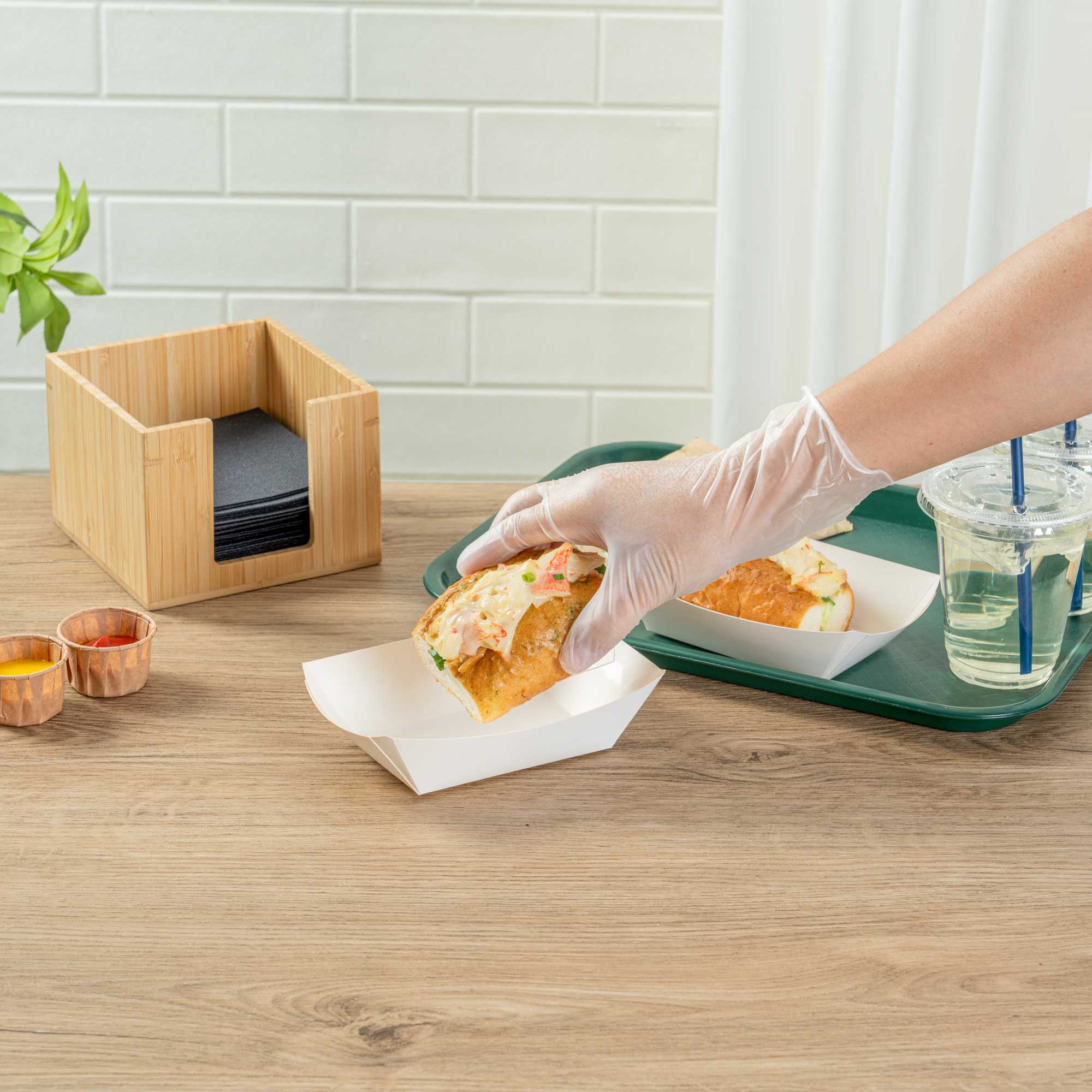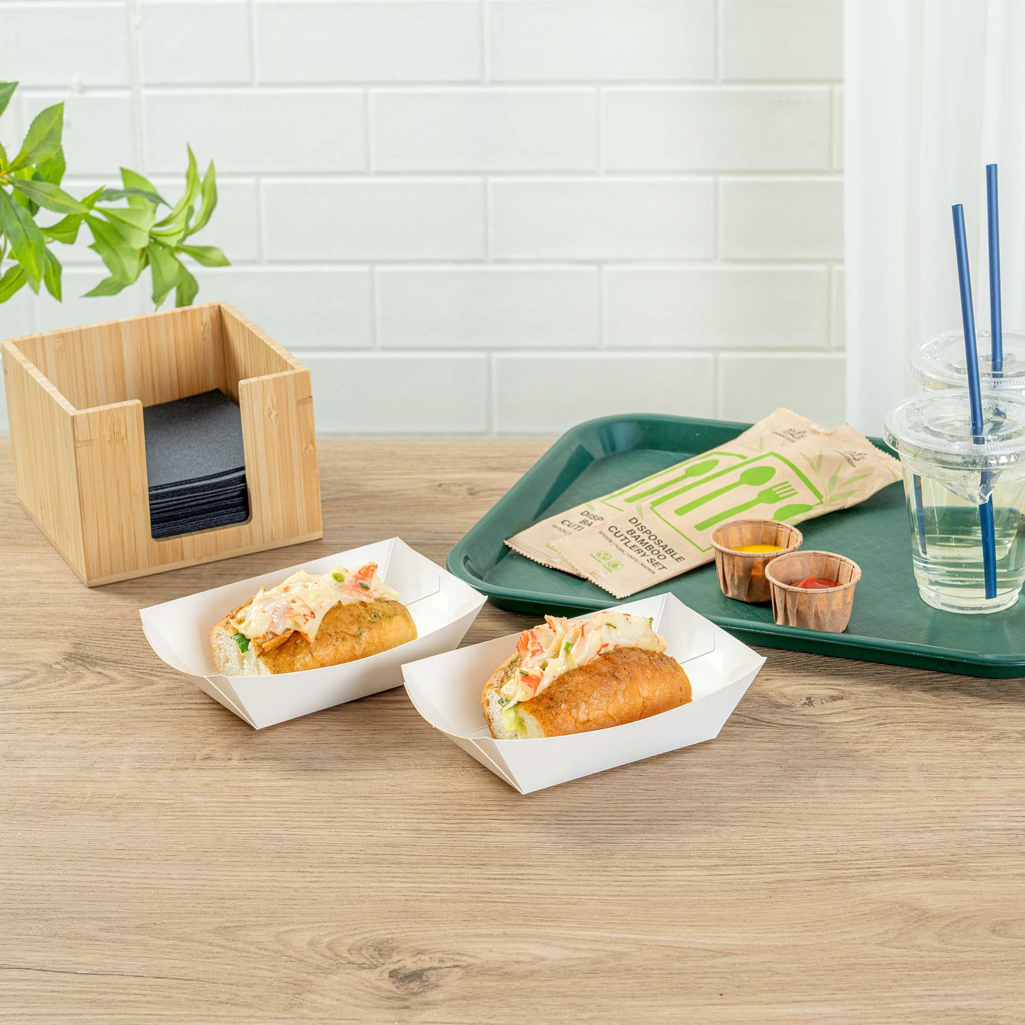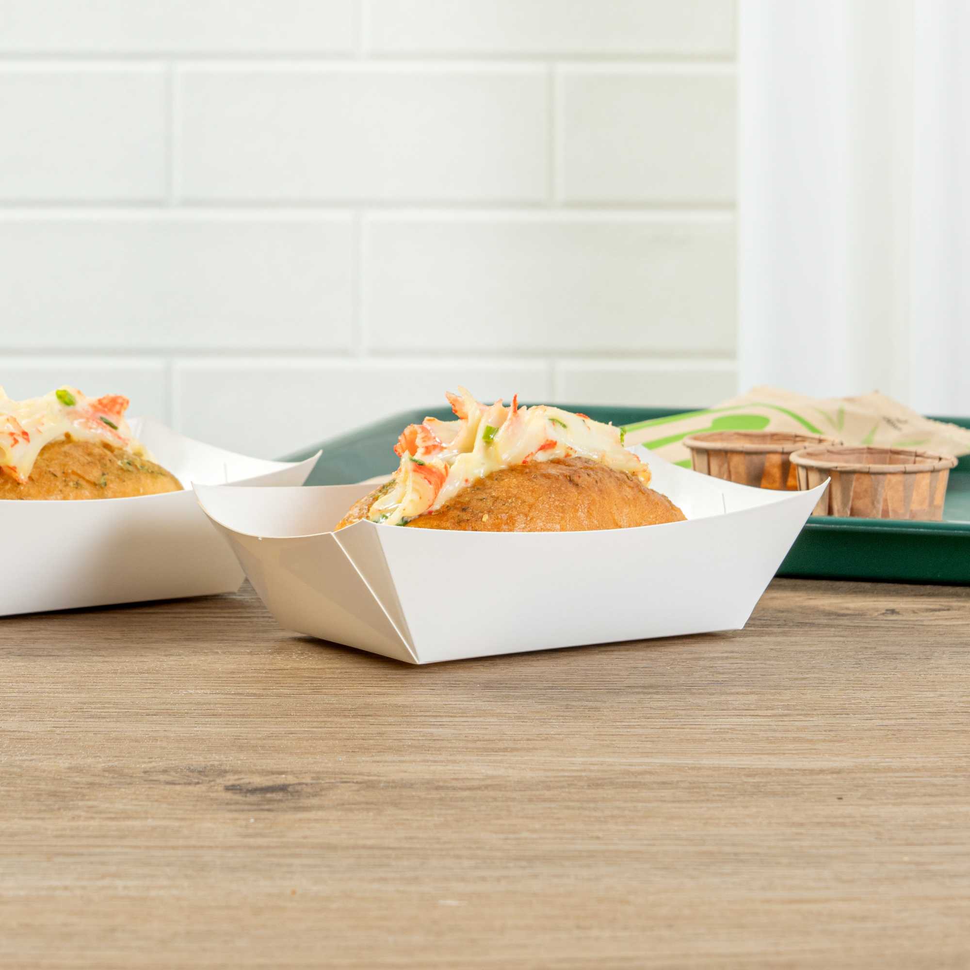 For a simple cleaning process for establishments and guests, these paper food boats are sustainably disposable. Reduce your impact on the environment!