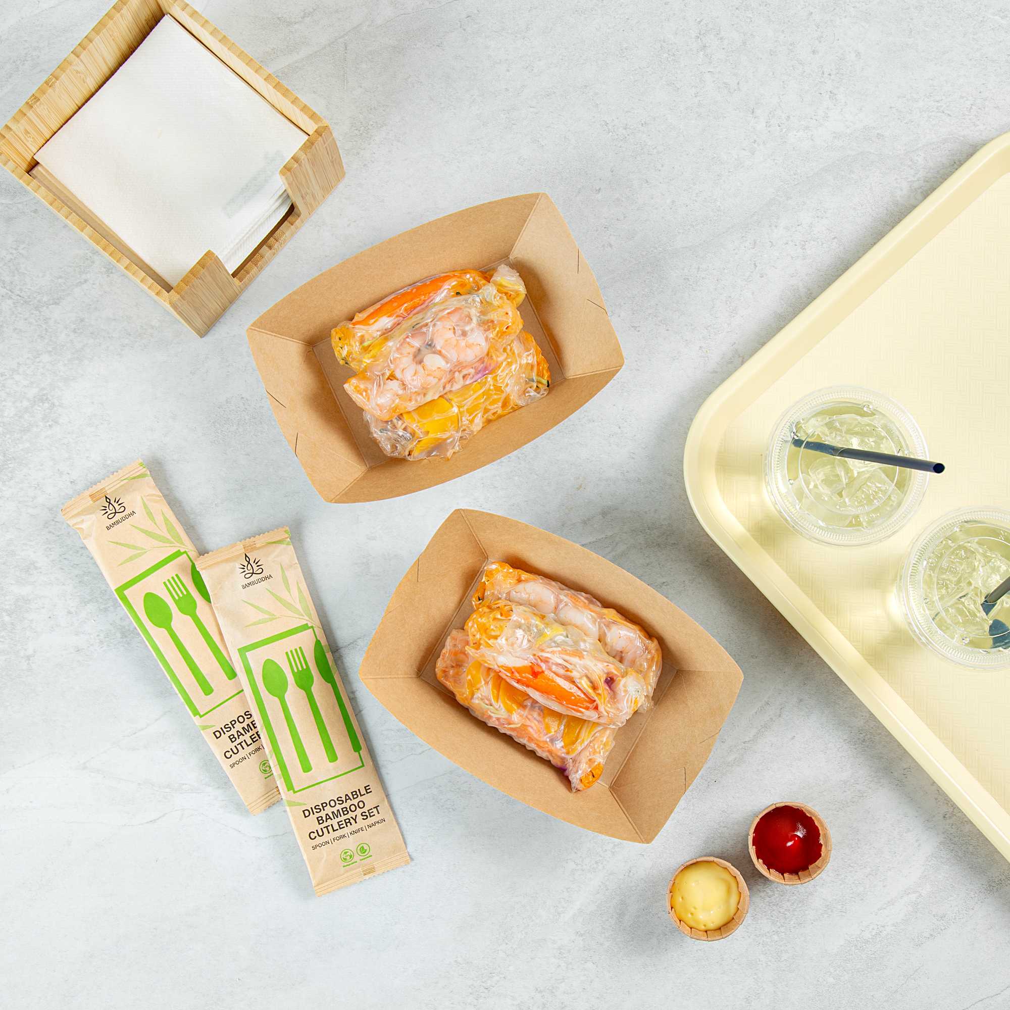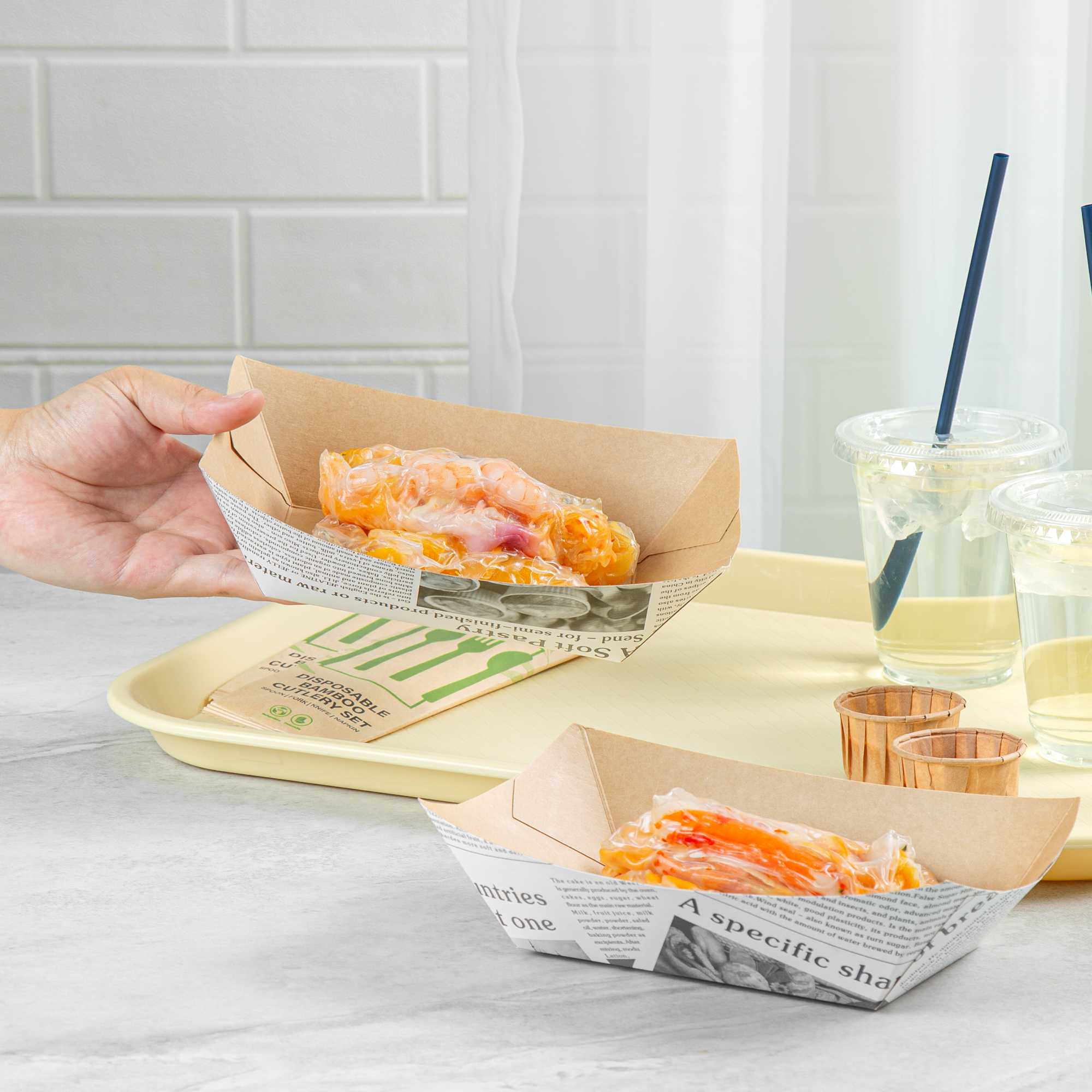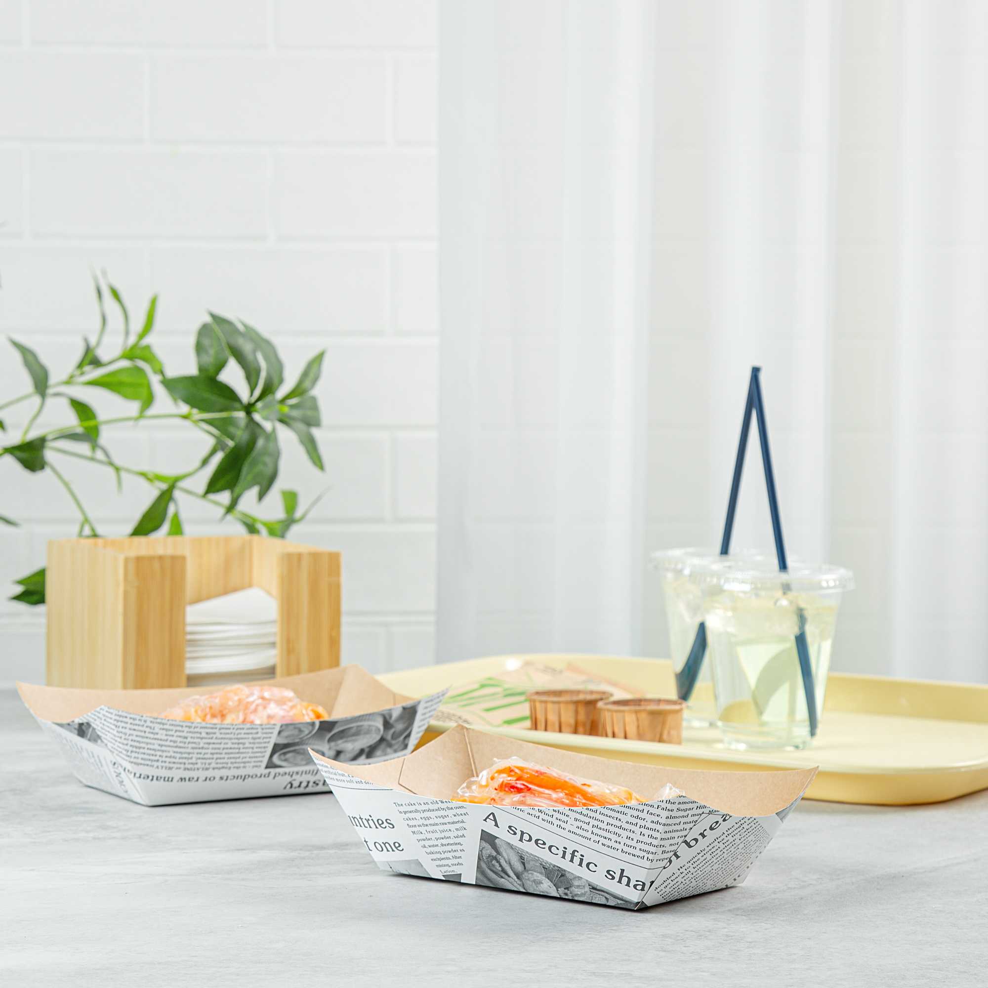 For a simple cleaning process for establishments and guests, these paper food boats are sustainably disposable. Reduce your impact on the environment!