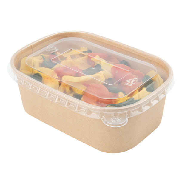 Pack up to go orders using our Bio Tek 25-ounce Oval Kraft Paper Serving Containers. Equipped with a grease-resistant PE lining, these paper food containers keep messy oils from leaking through. These serving containers are constructed with a thick kraft board to help minimize heat transfer from the packed food onto your employees' or patrons' hands. Match these paper containers with our compatible Bio Tek lids to securely lock in meals for takeout or delivery (SKU: RWA1054K and RWA1055C). To easily store food in your kitchen, these kraft containers are freezable. These food containers are stackable for space-saving storage in your foodservice establishment. For quick and easy cleanup, these kraft paper containers are recyclable. These kraft paper containers can hold up to 25 ounces and measure 6.75 inches in length by 4.5 inches in width by 2.25 inches in height. Sold in a 100 count box. Bio Tek lids are available and sold separately.