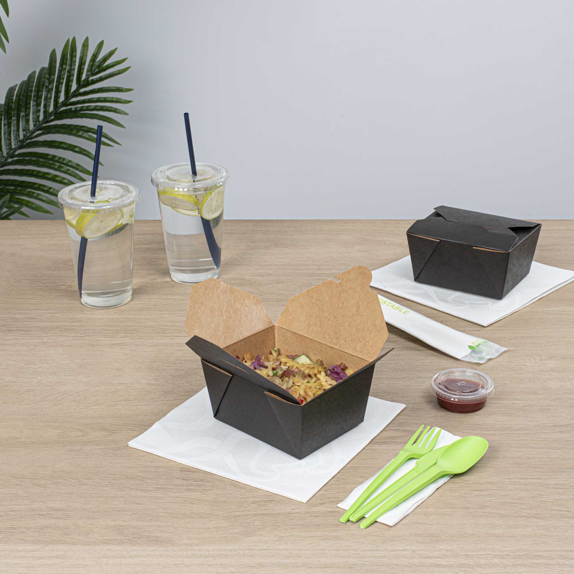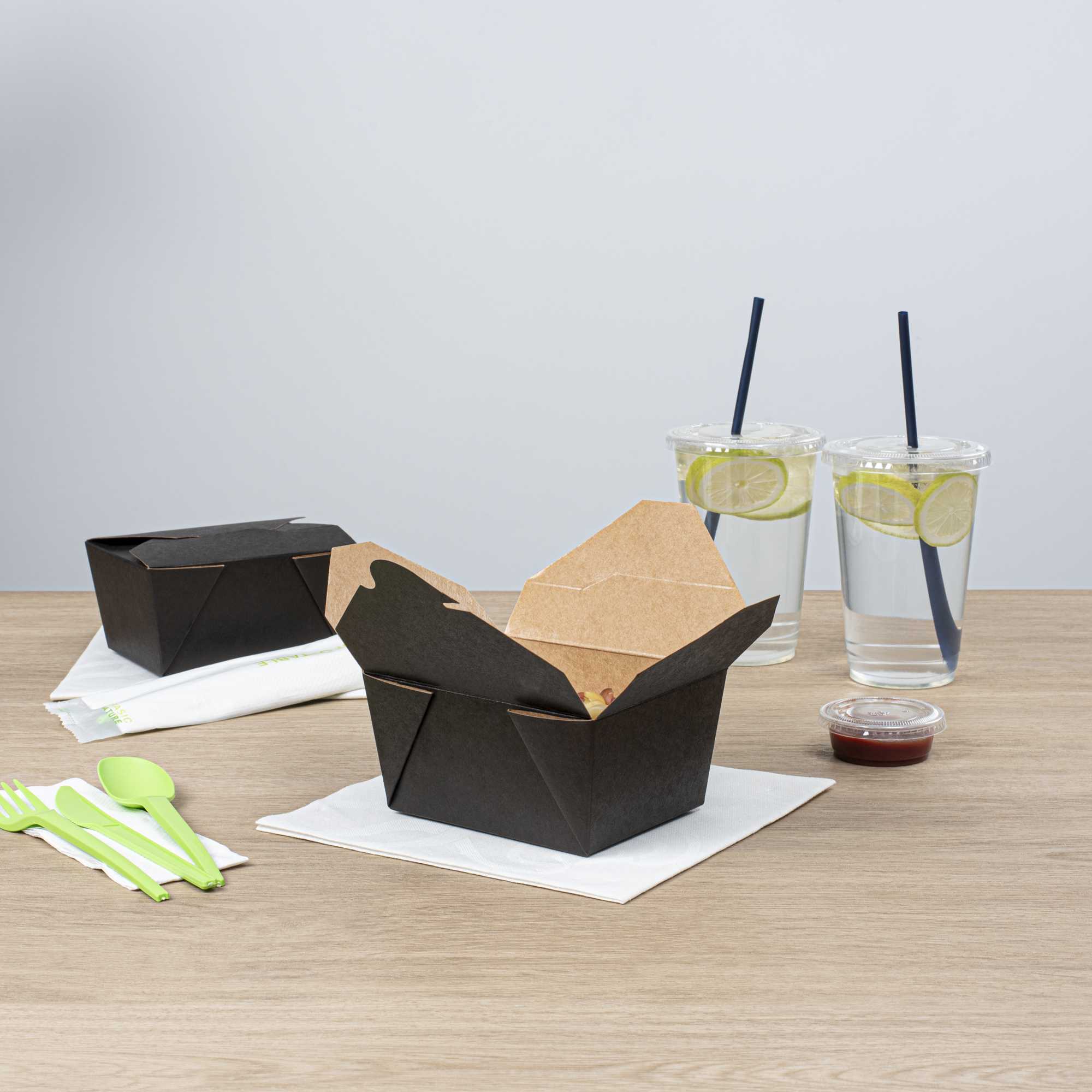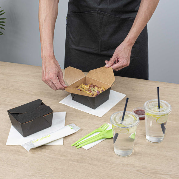 No matter the size of your dish, our disposable food boxes are available in different capacities to accommodate any meal. Choose from our soup, noodle, salad, or rectangle containers to easily pack and take food anywhere.