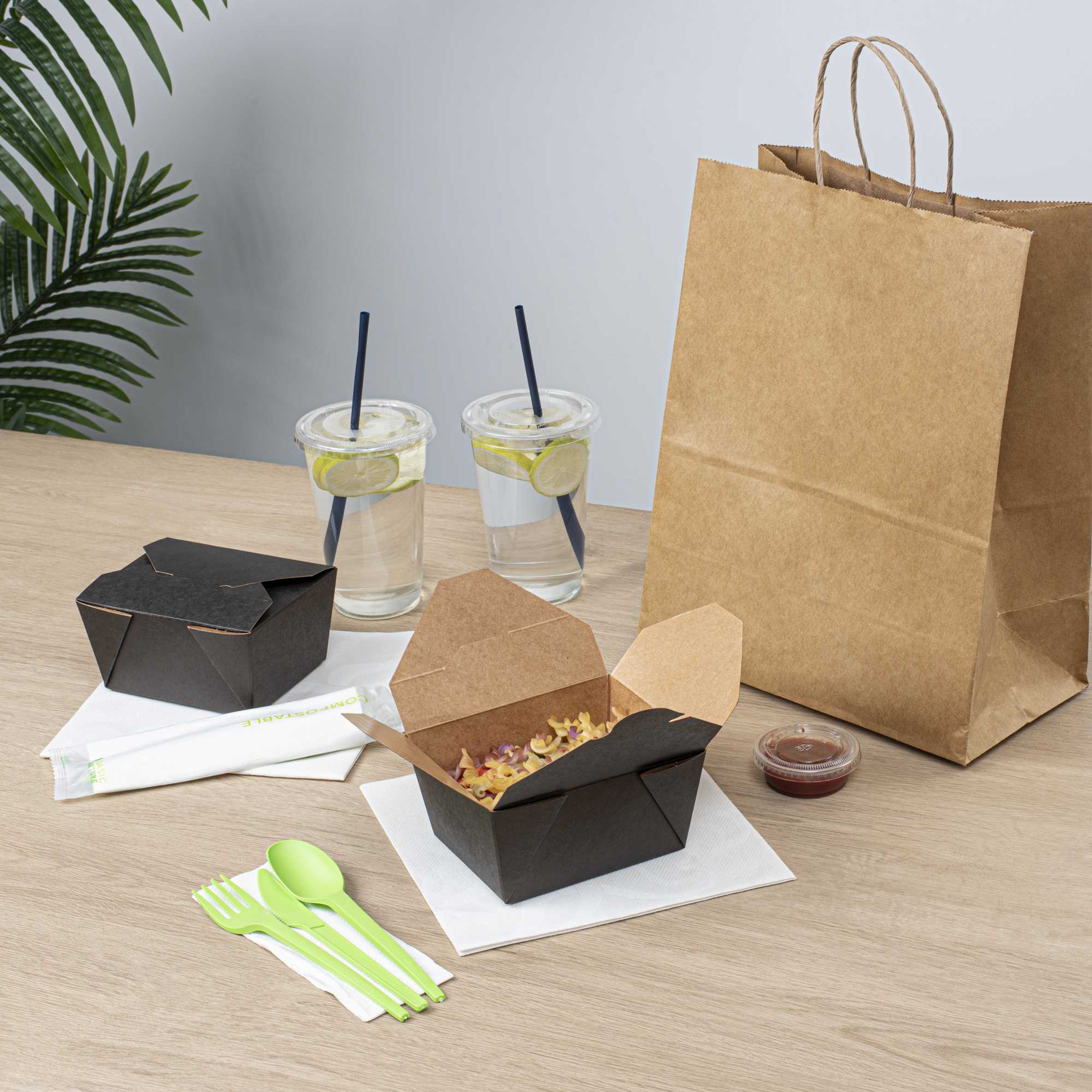 No matter the size of your dish, our disposable food boxes are available in different capacities to accommodate any meal. Choose from our soup, noodle, salad, or rectangle containers to easily pack and take food anywhere.