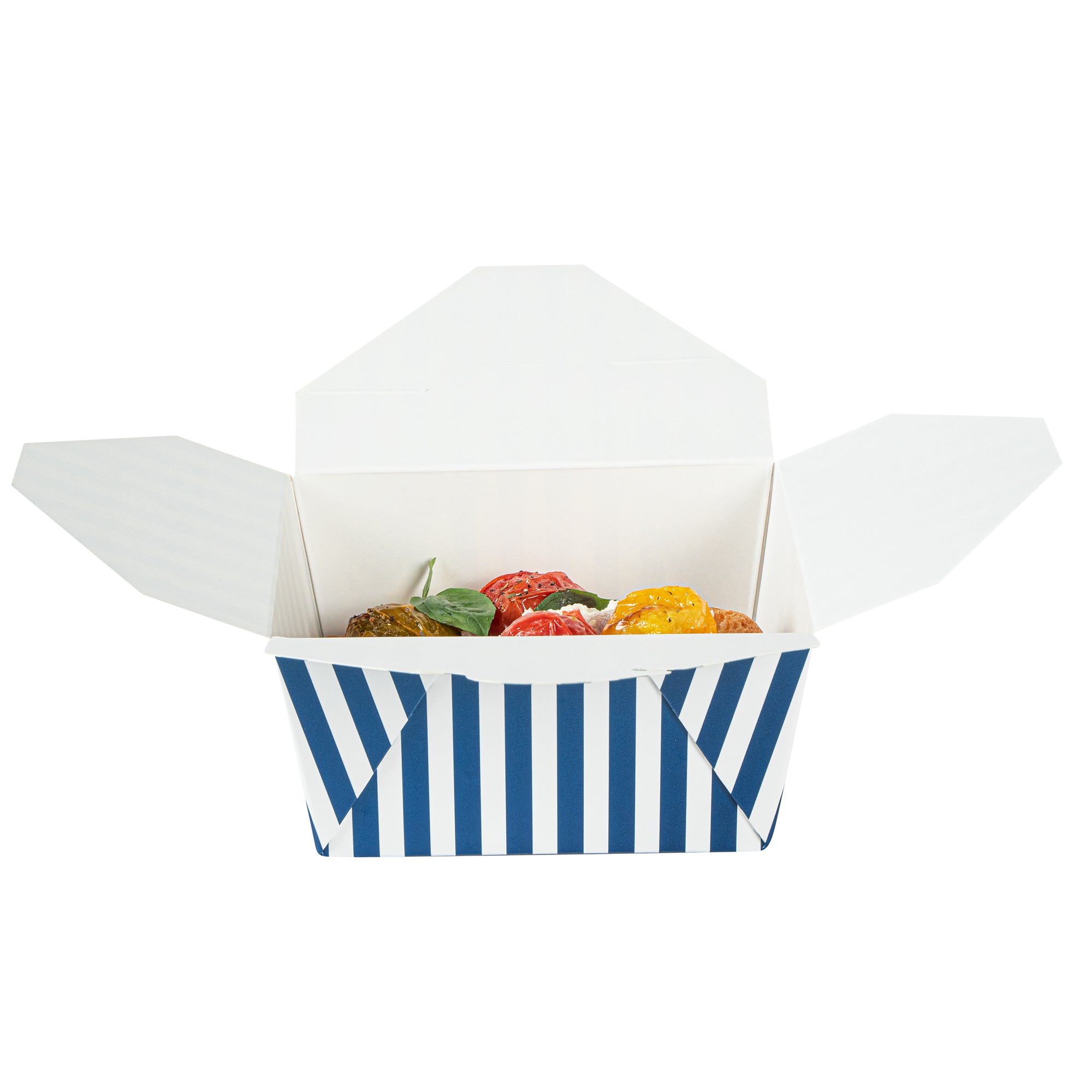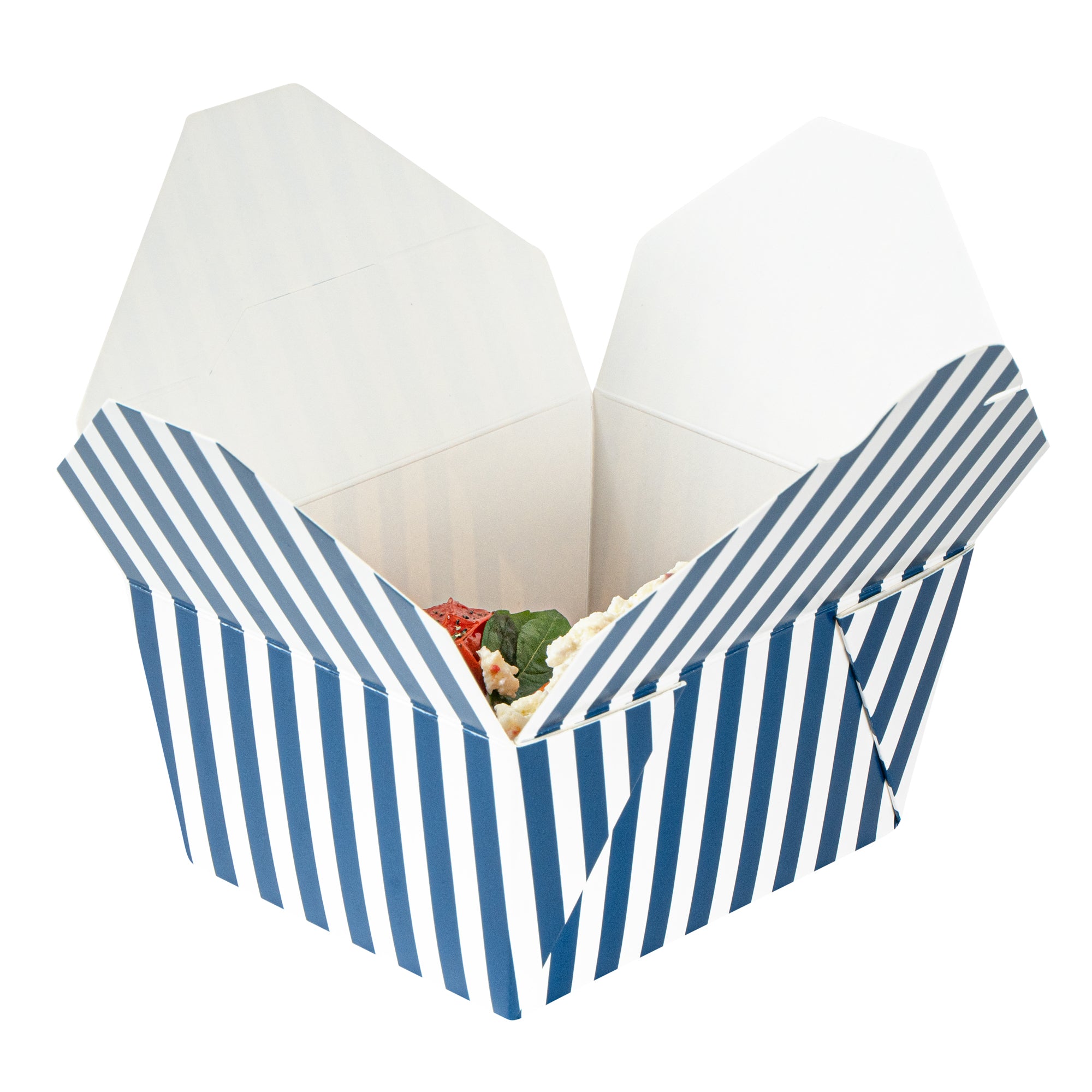 30 OZ BLUE AND WHITE STRIPE PAPER #1 BIO BOX TAKE OUT CONTAINER