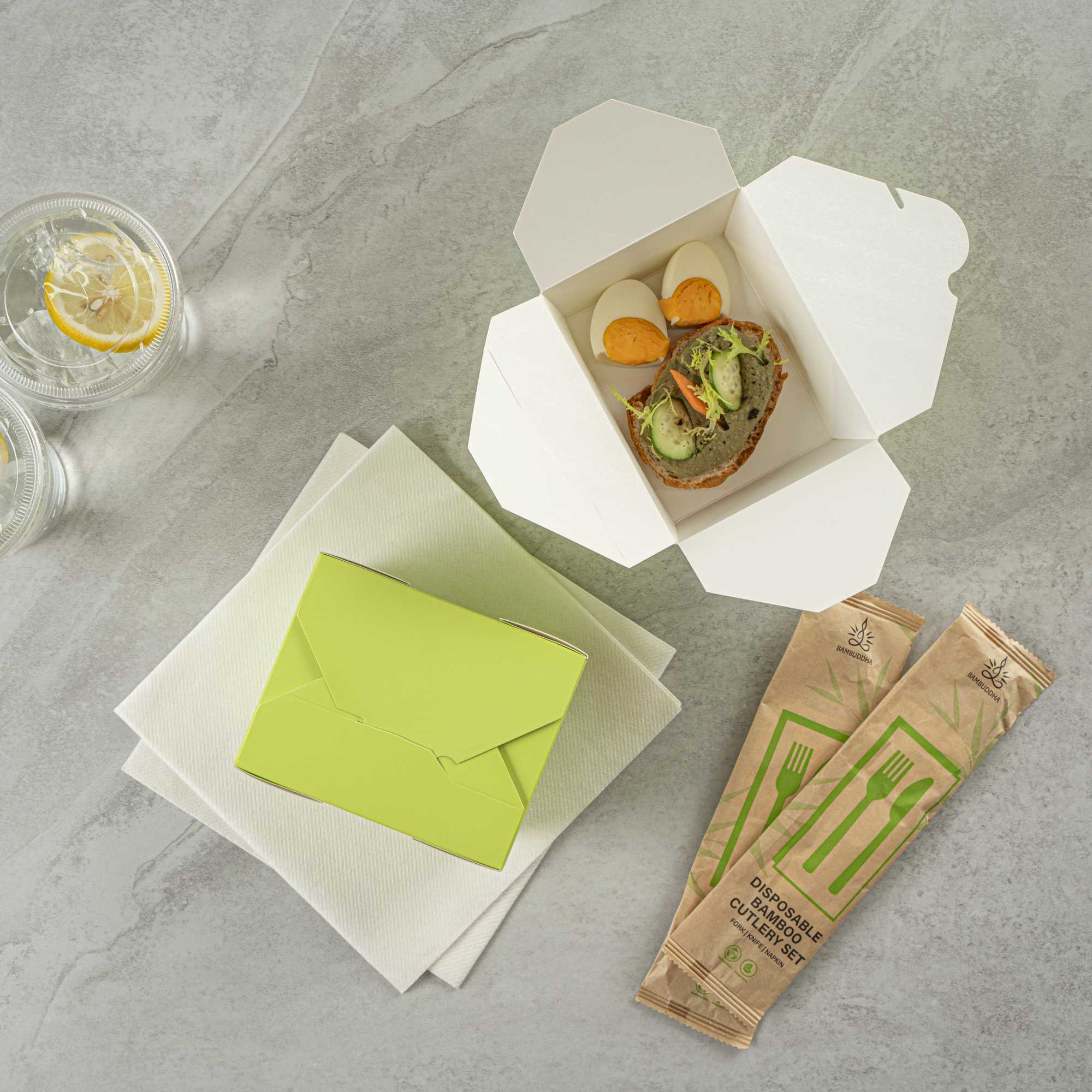 Providing an unmatched level of ease and portability, these bio boxes ensure a secure lock with their built-in tab lock, making for durable take out boxes. Their uniquely foldable design allows for easy storage, on-the-go functionality, and a minimalistic approach.