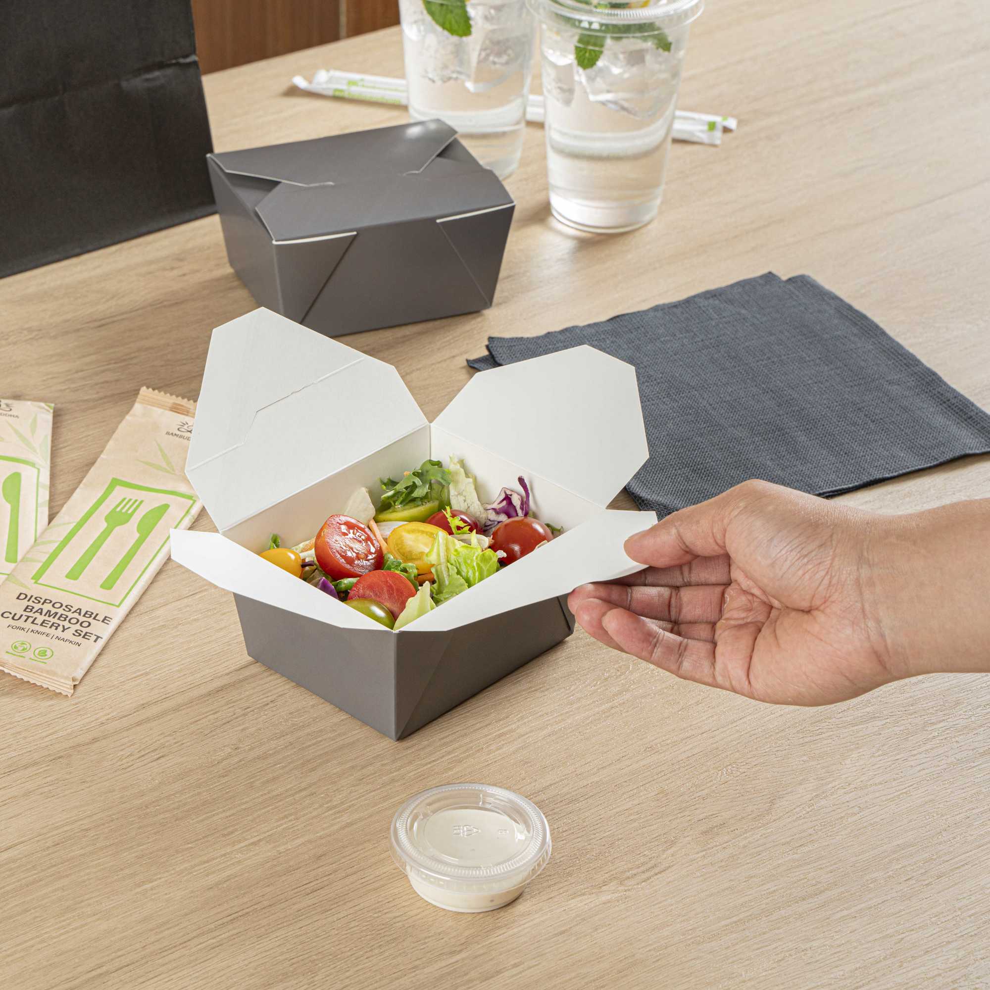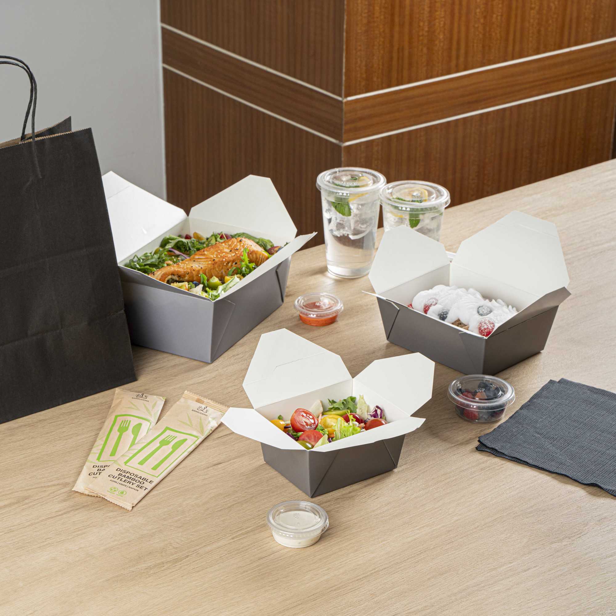 These premium take out boxes remove the hassle of rigorous washing after events, as they are disposable. Serve the convenience of easy cleanup with delicious food.