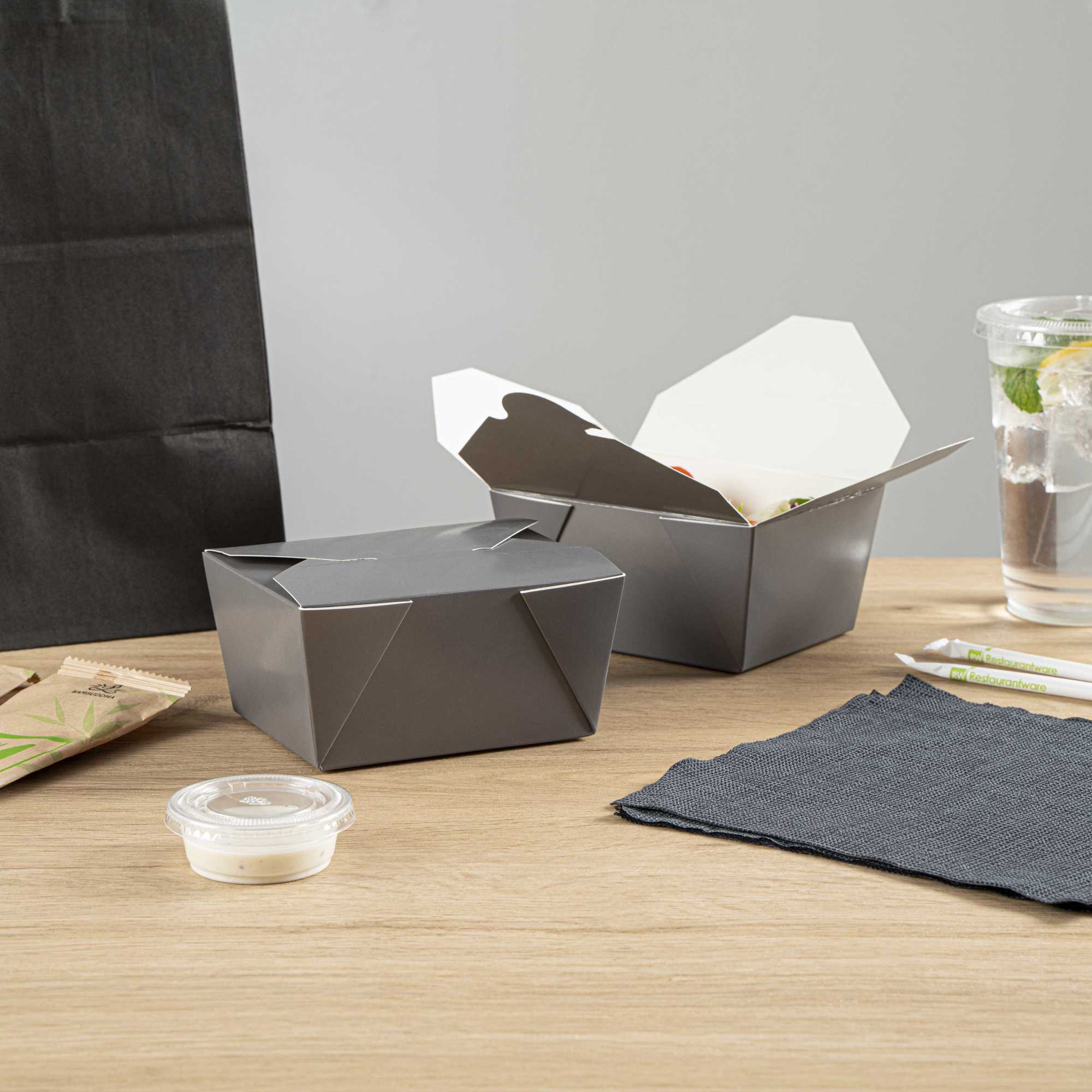 - Tab-lock closure ensures mess-free takeout and delivery