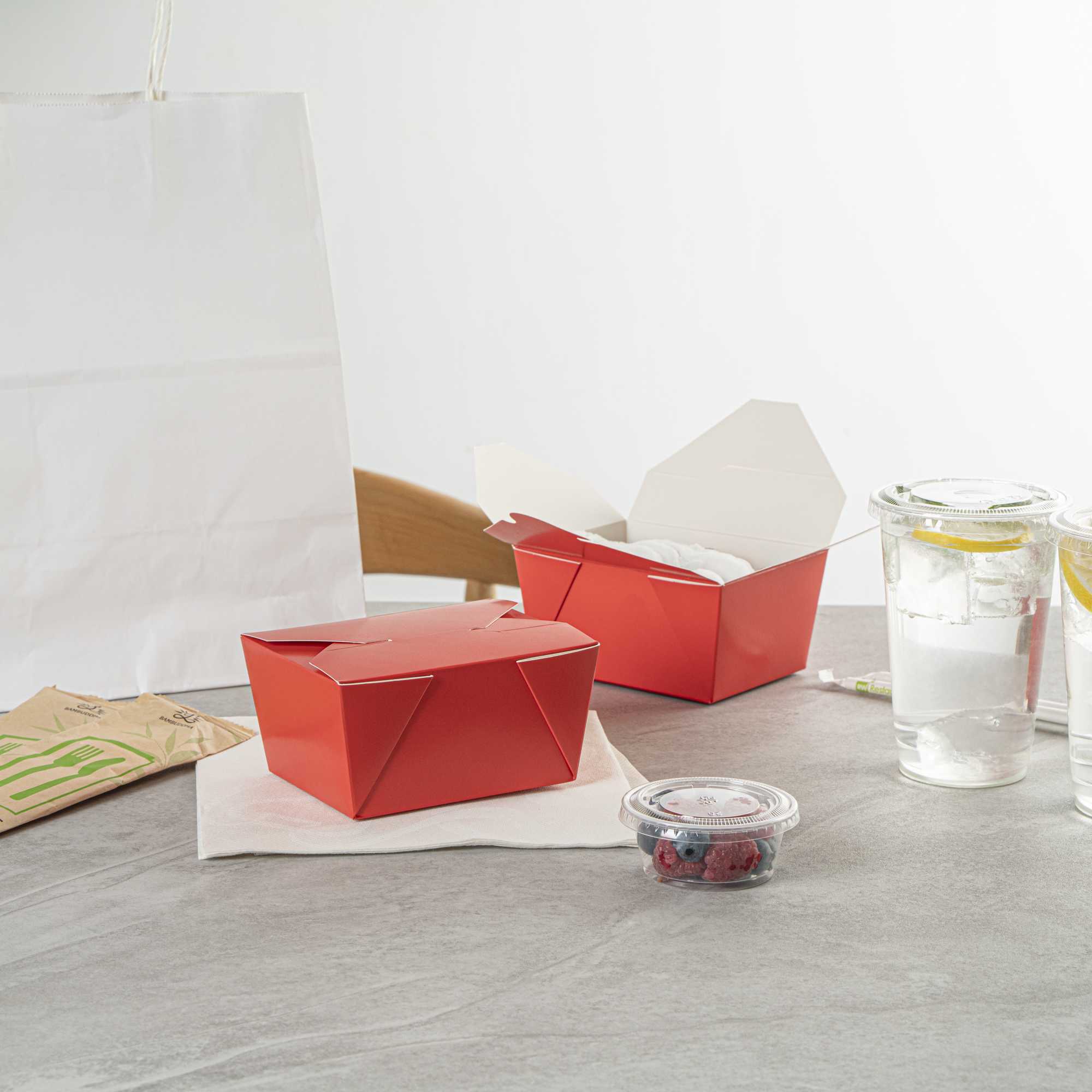 No matter the size of your dish, our disposable food boxes are available in different capacities to accommodate any meal. Choose from our soup, noodle, salad, or rectangle containers to easily pack and take food anywhere.