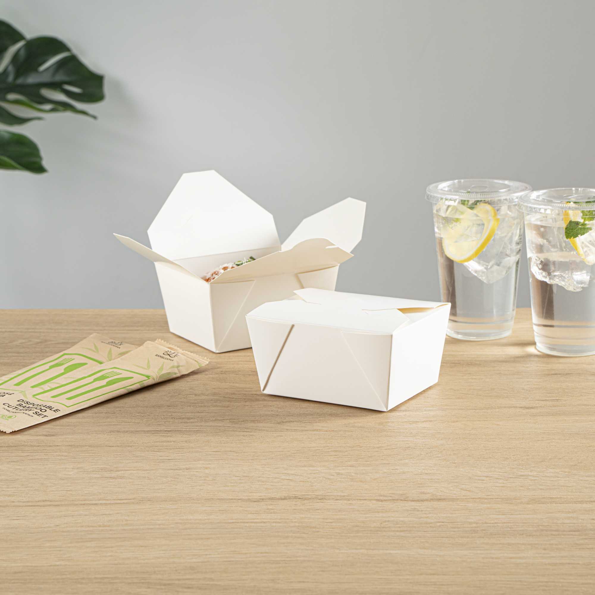 No matter the size of your dish, our disposable food boxes are available in different capacities to accommodate any meal. Choose from our soup, noodle, salad, or rectangle containers to easily pack and take food anywhere.