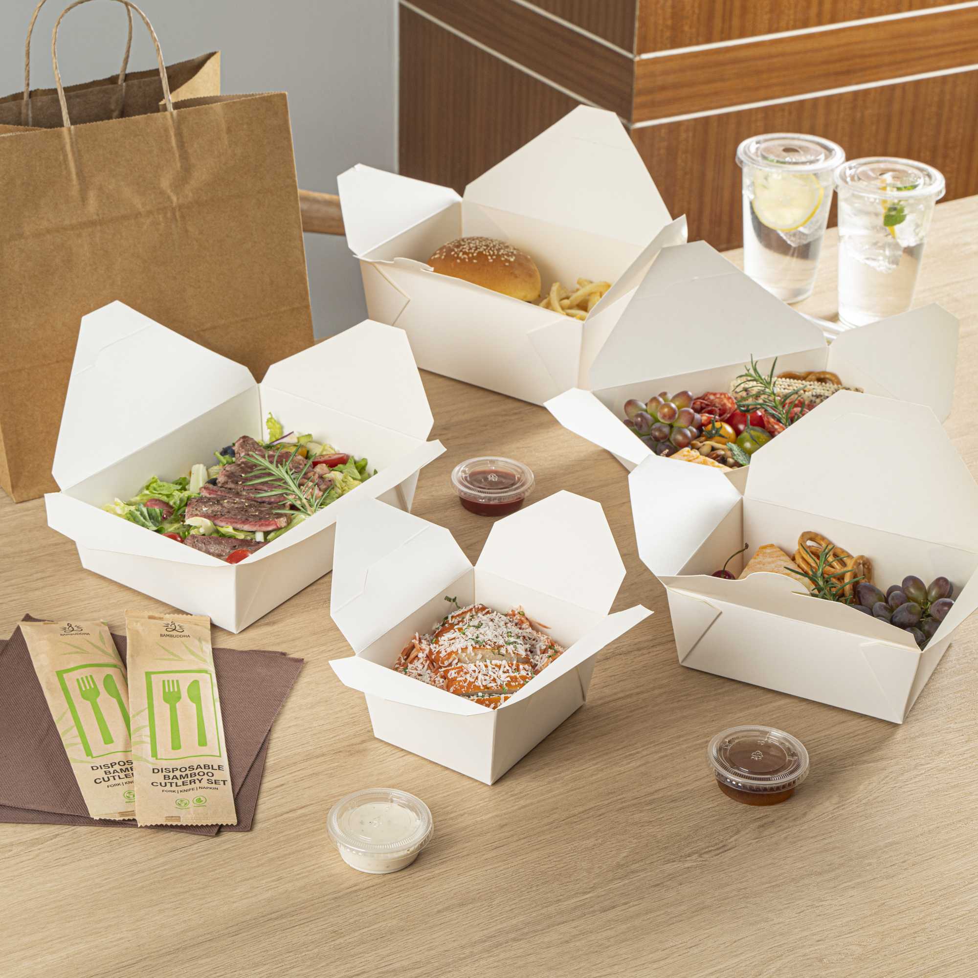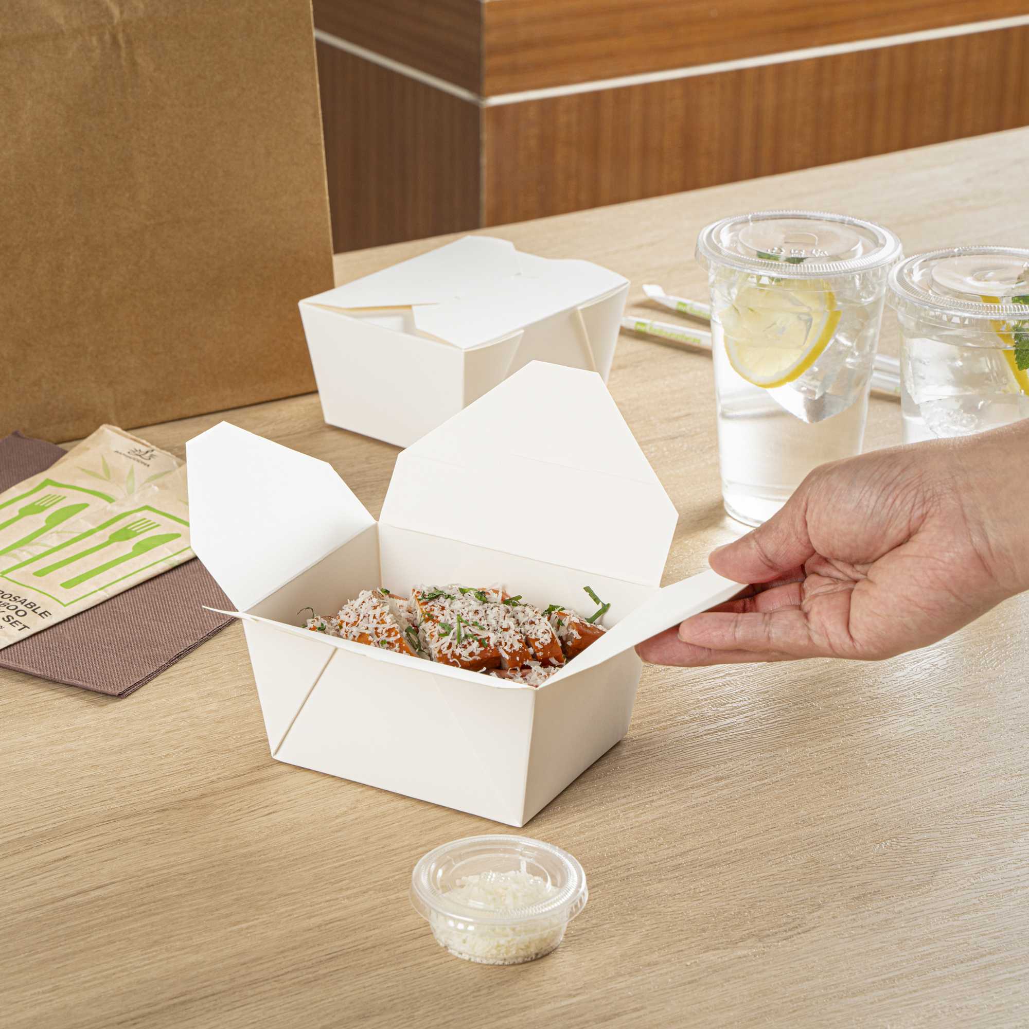 - Tab-lock closure ensures mess-free takeout and delivery