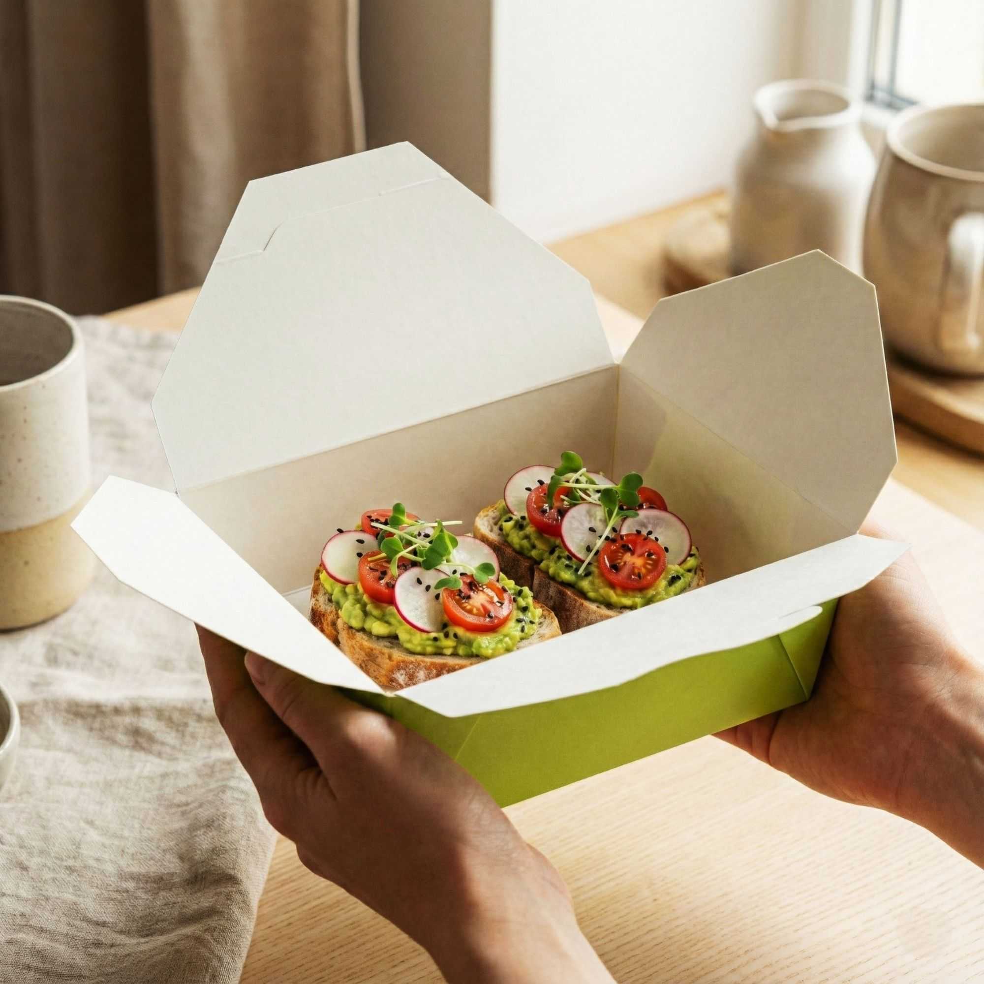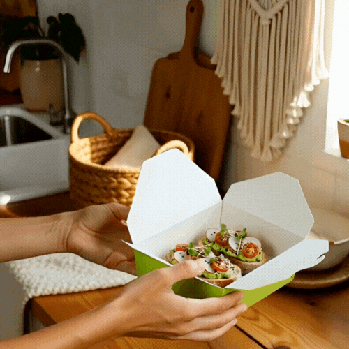 Our food containers are made from recyclable paper to easily dispose of boxes in a nature-friendly way. Don’t worry about washing dirty containers!
