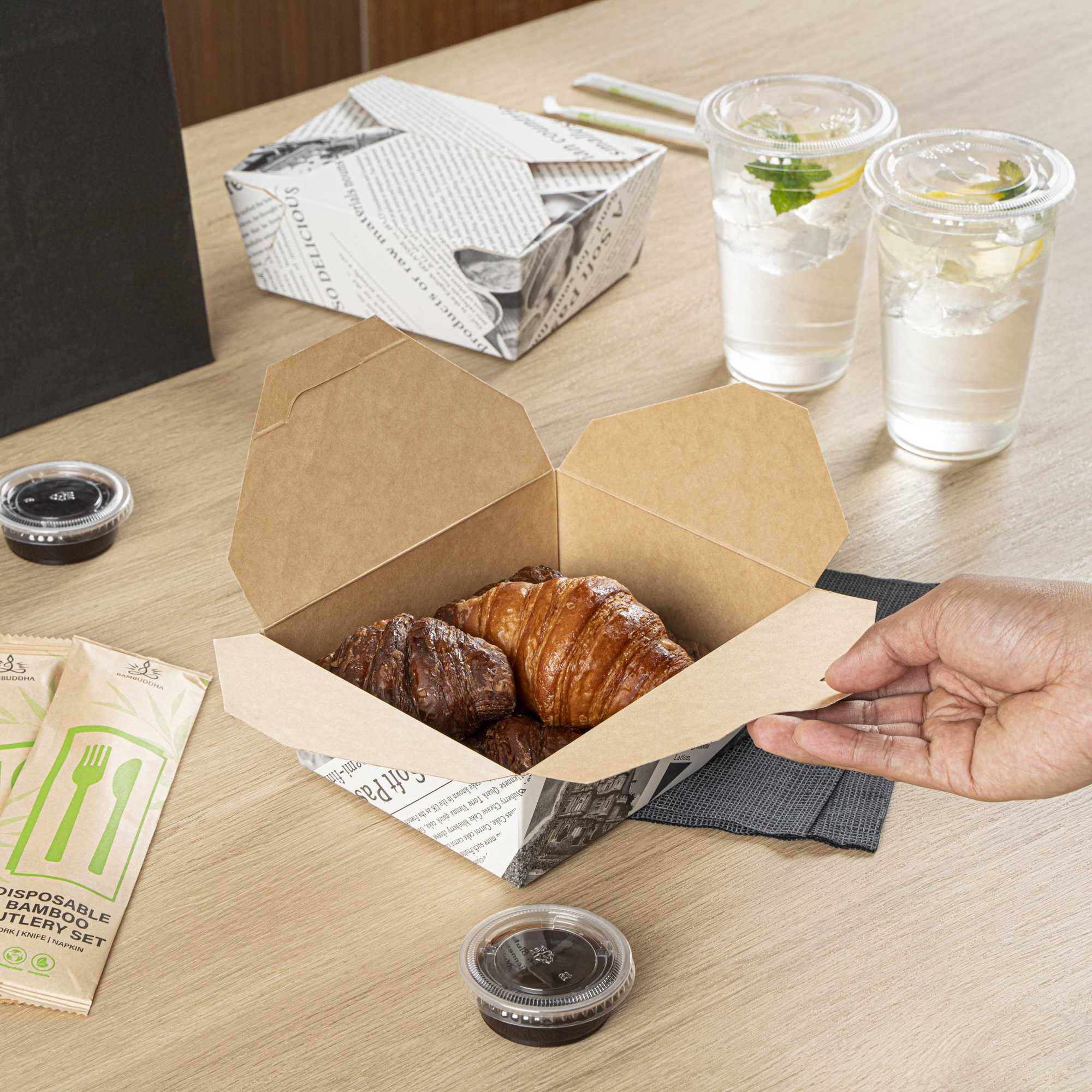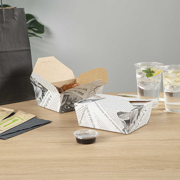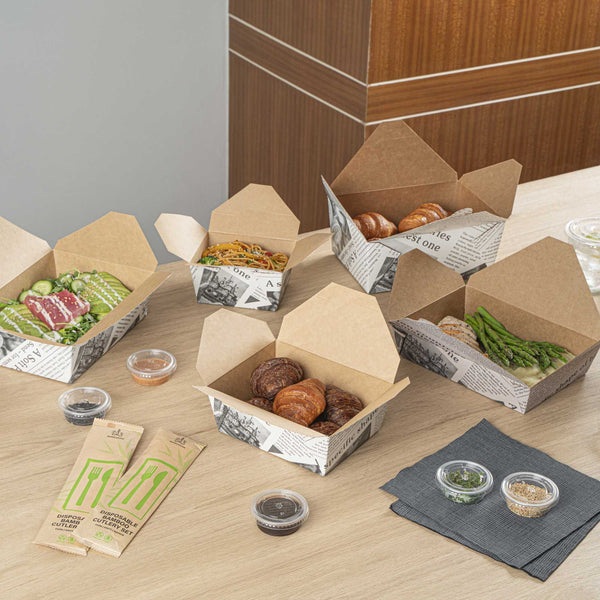 No matter the size of your dish, our disposable food boxes are available in different capacities to accommodate any meal. Choose from our soup, noodle, salad, or rectangle containers to easily pack and take food anywhere.