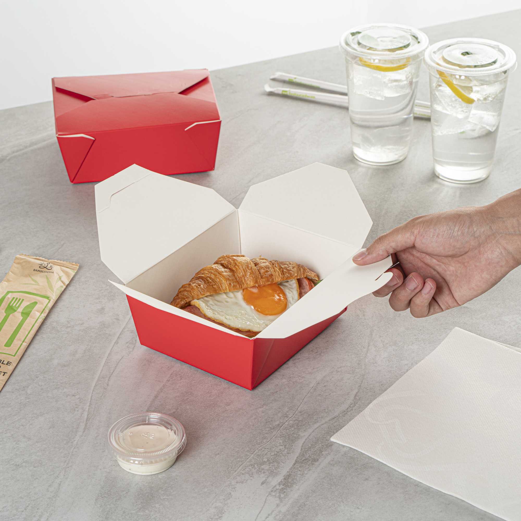 No matter the size of your dish, our disposable food boxes are available in different capacities to accommodate any meal. Choose from our soup, noodle, salad, or rectangle containers to easily pack and take food anywhere.