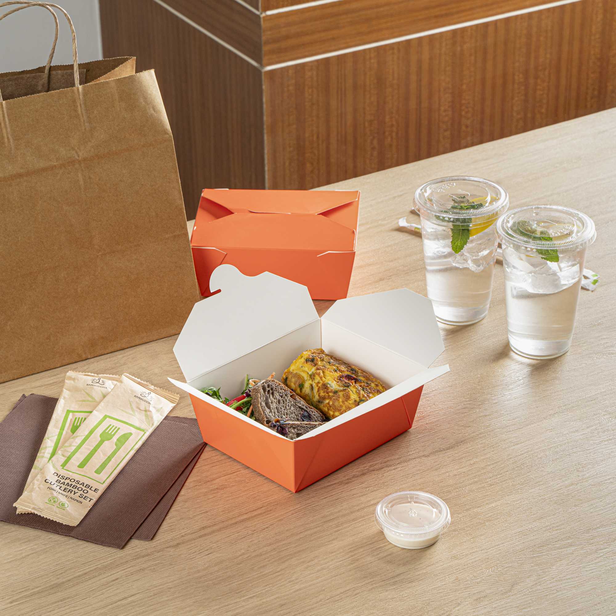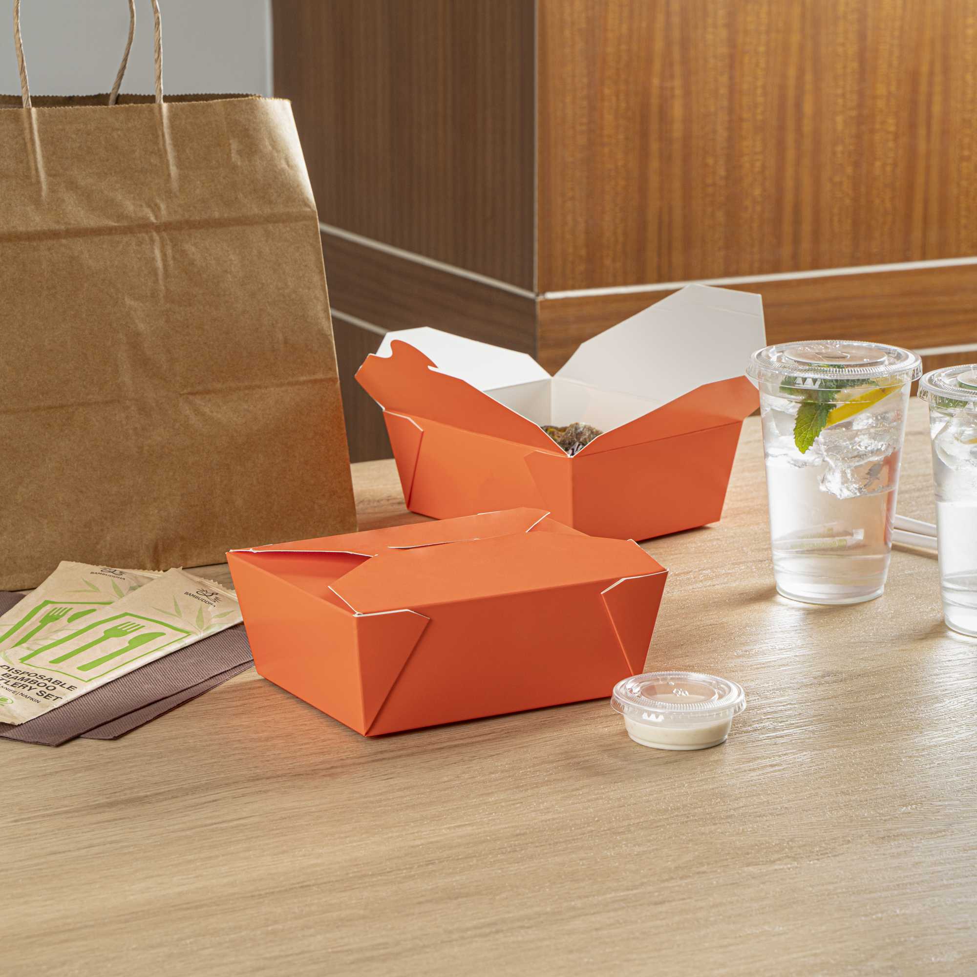 45 OZ RECTANGLE TANGERINE ORANGE PAPER #8 BIO BOX TAKE OUT CONTAINER