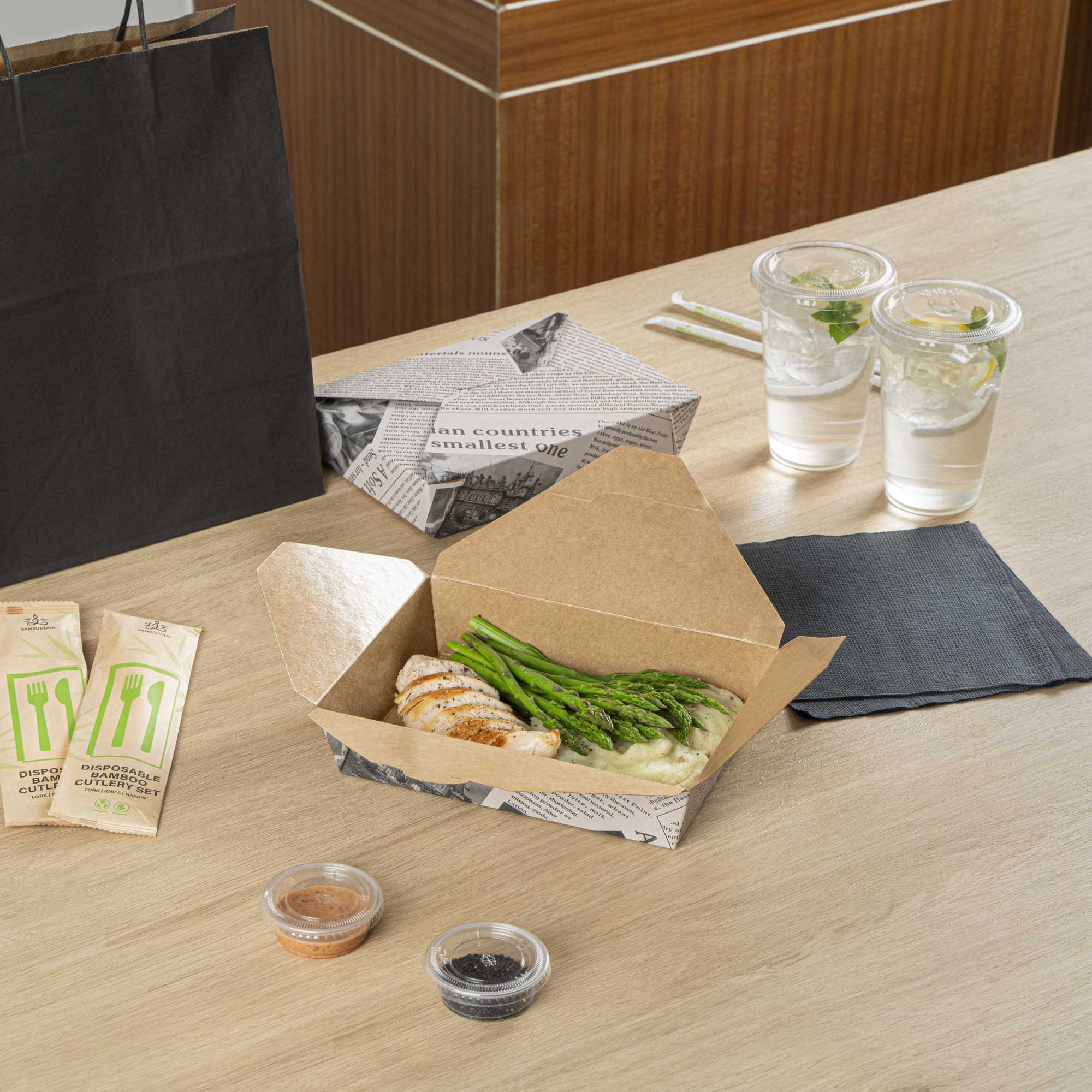 No matter the size of your dish, our disposable food boxes are available in different capacities to accommodate any meal. Choose from our soup, noodle, salad, or rectangle containers to easily pack and take food anywhere.