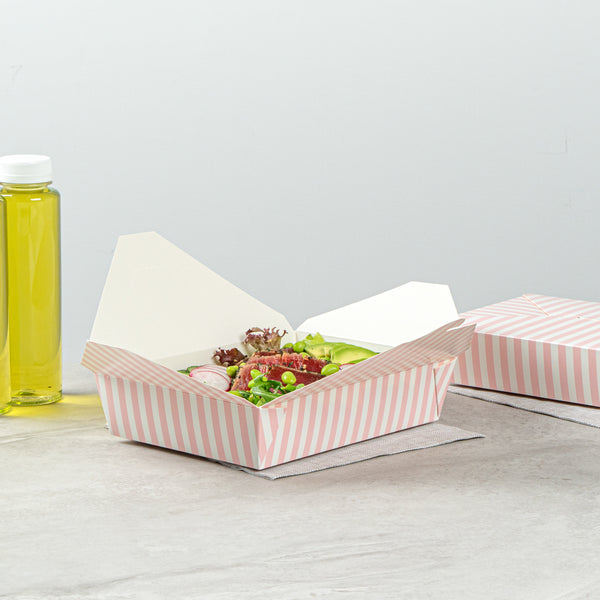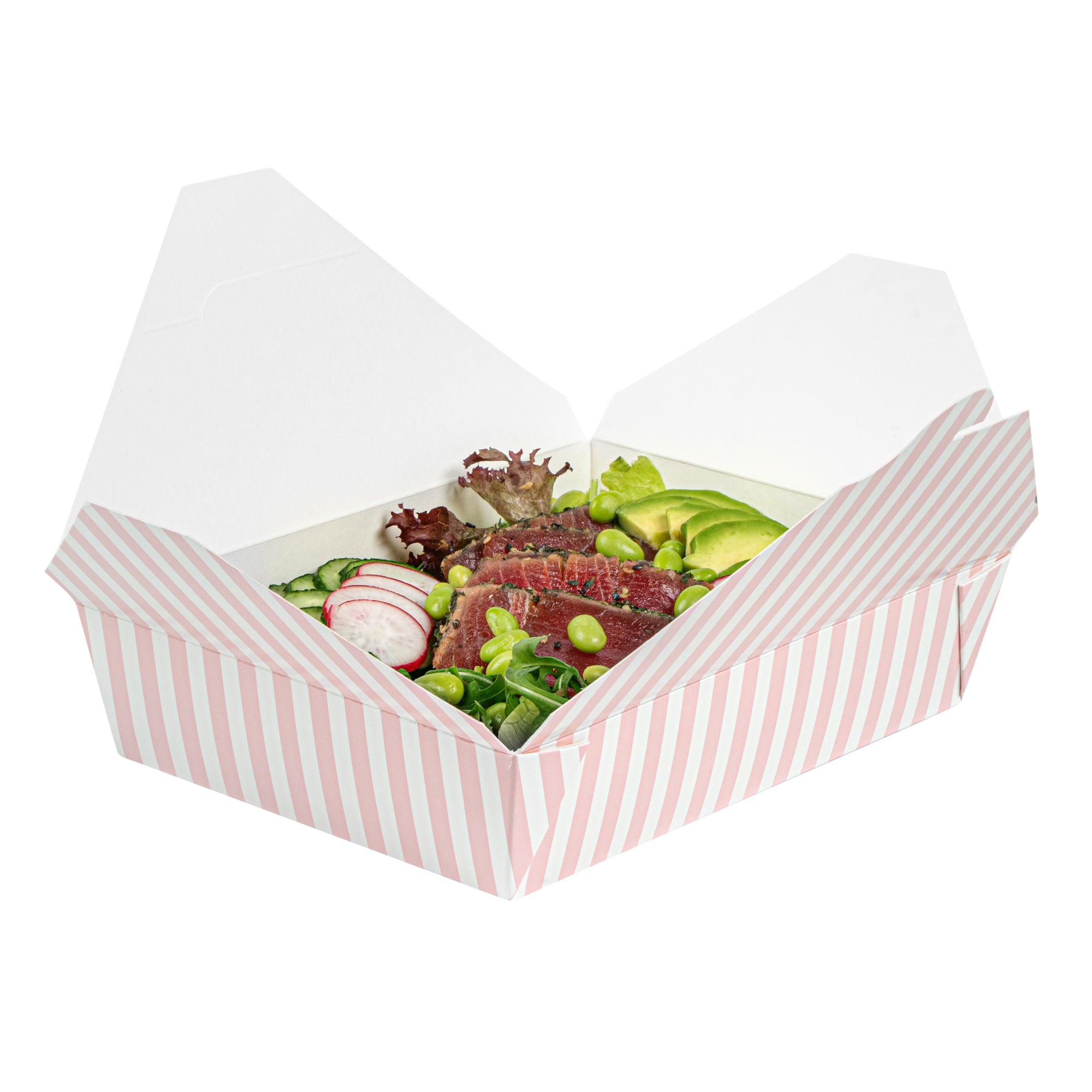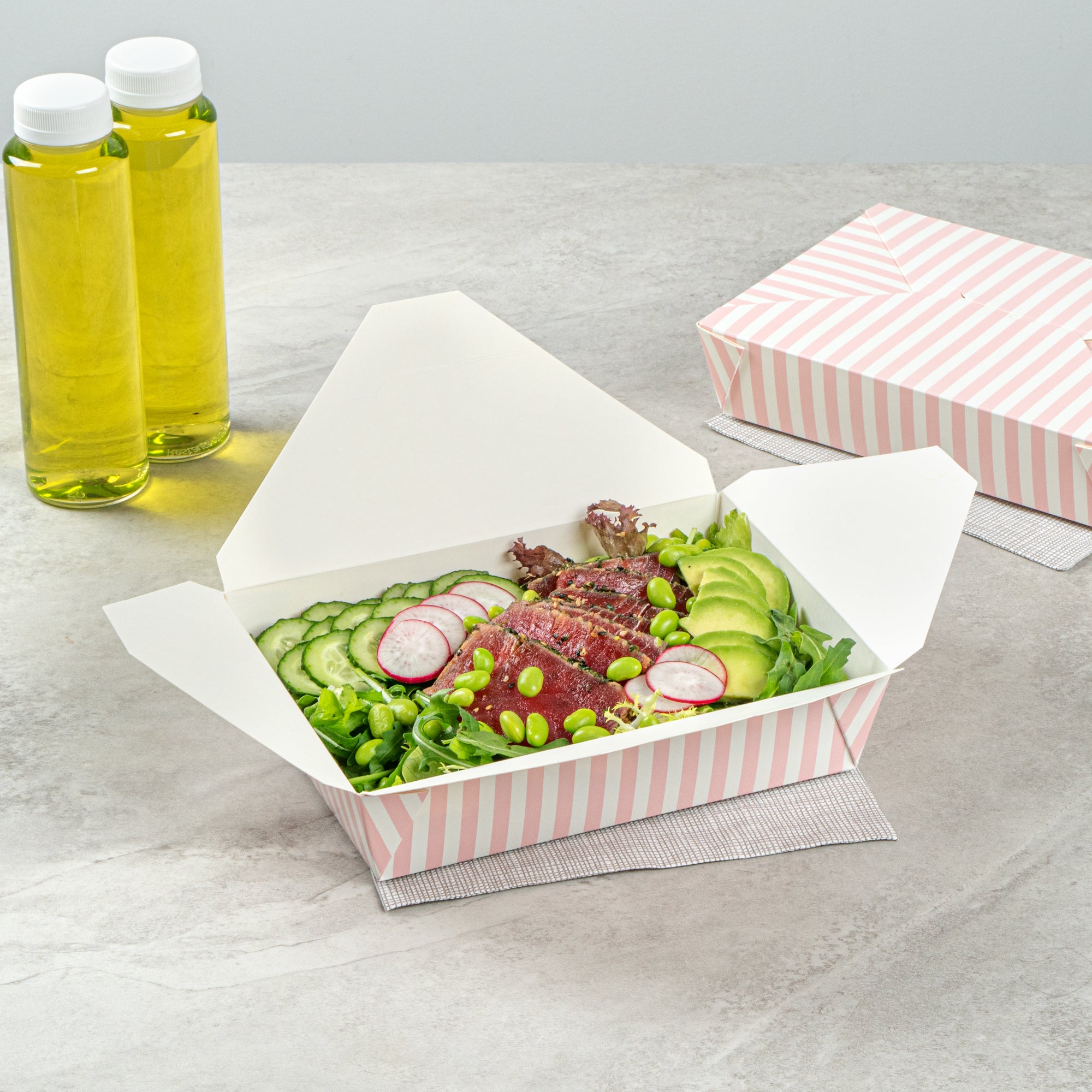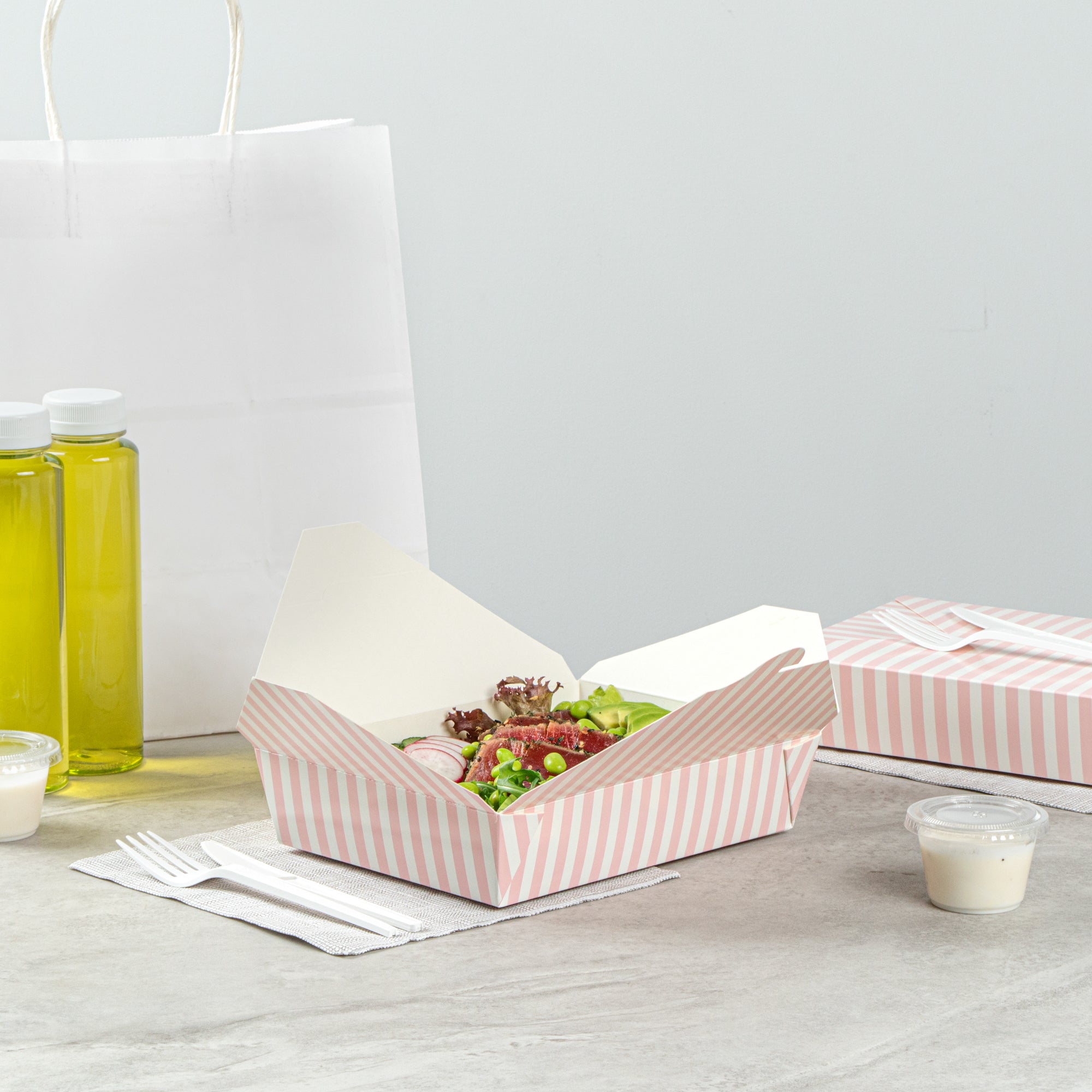 49 OZ PINK AND WHITE STRIPE PAPER #2 BIO BOX TAKE OUT CONTAINER