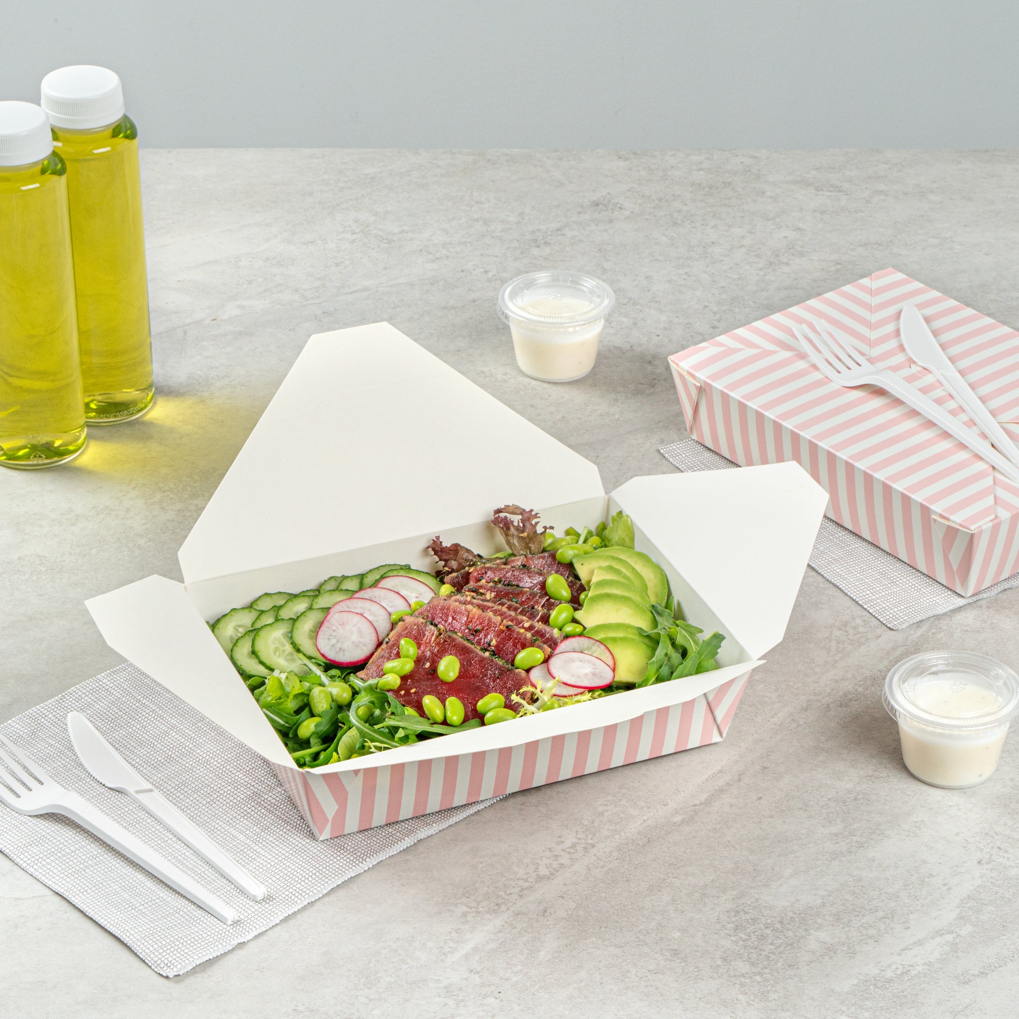 These premium take out boxes remove the hassle of rigorous washing after events, as they are disposable. Serve the convenience of easy cleanup with delicious food.