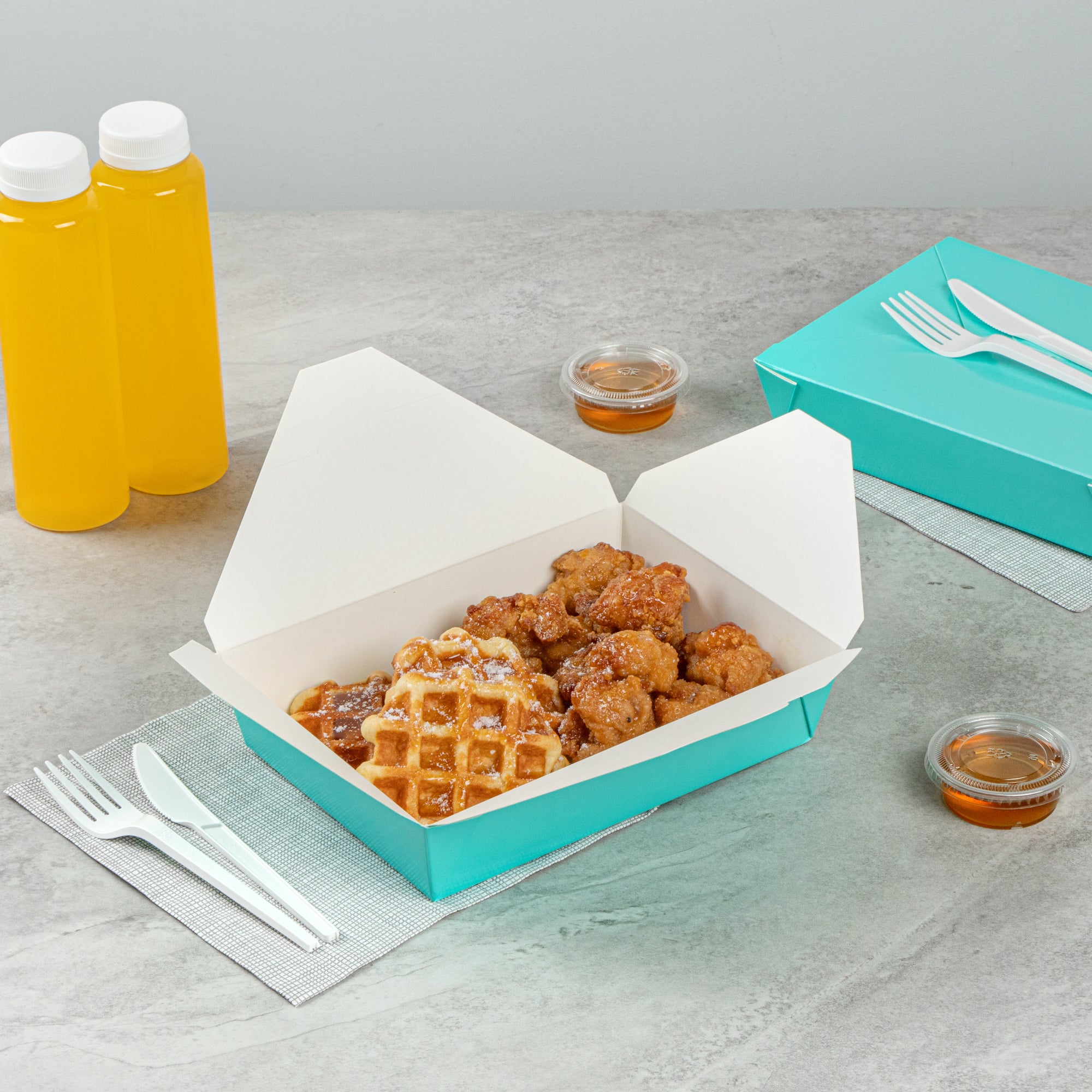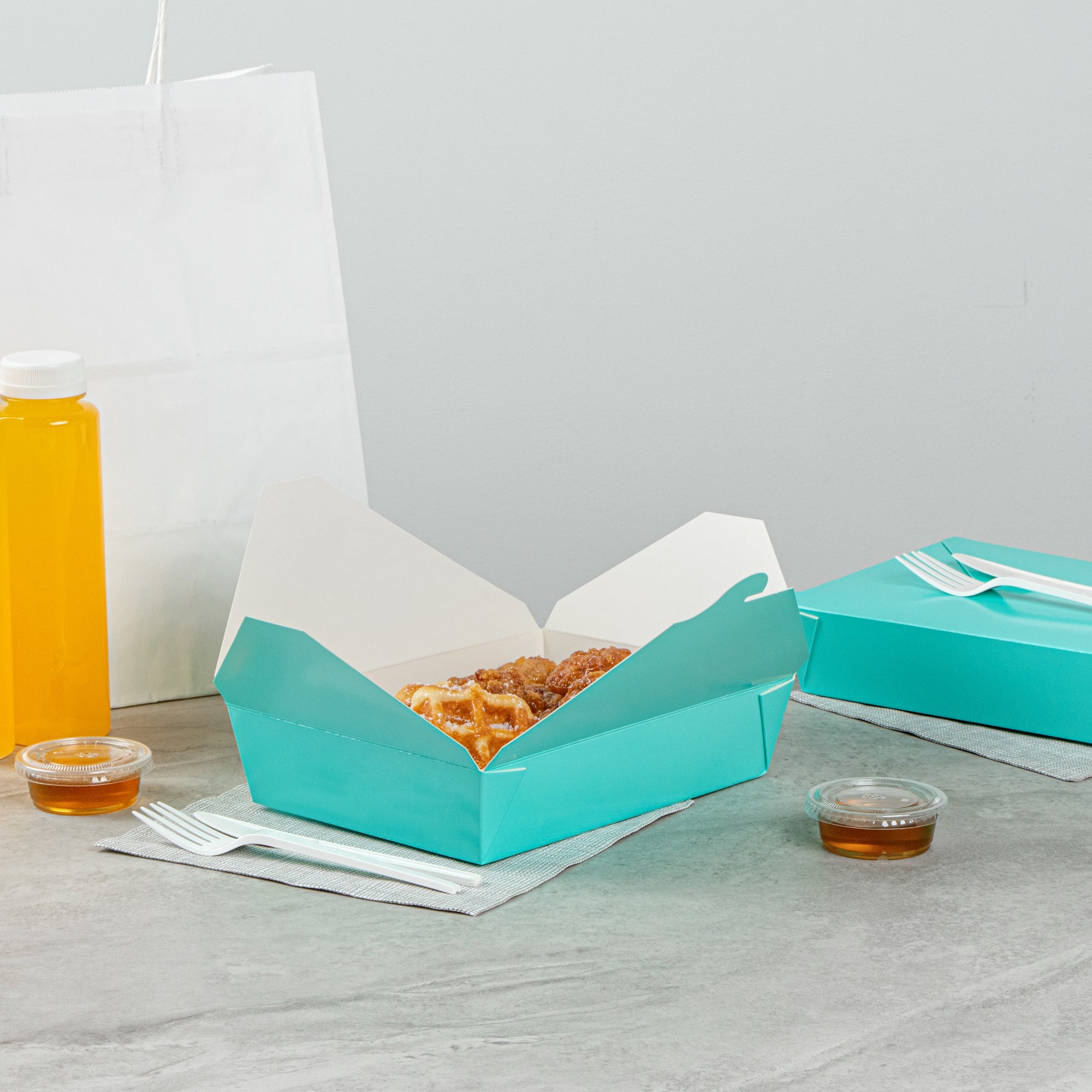 49 OZ RECTANGLE TURQUOISE PAPER #2 BIO BOX TAKE OUT CONTAINER