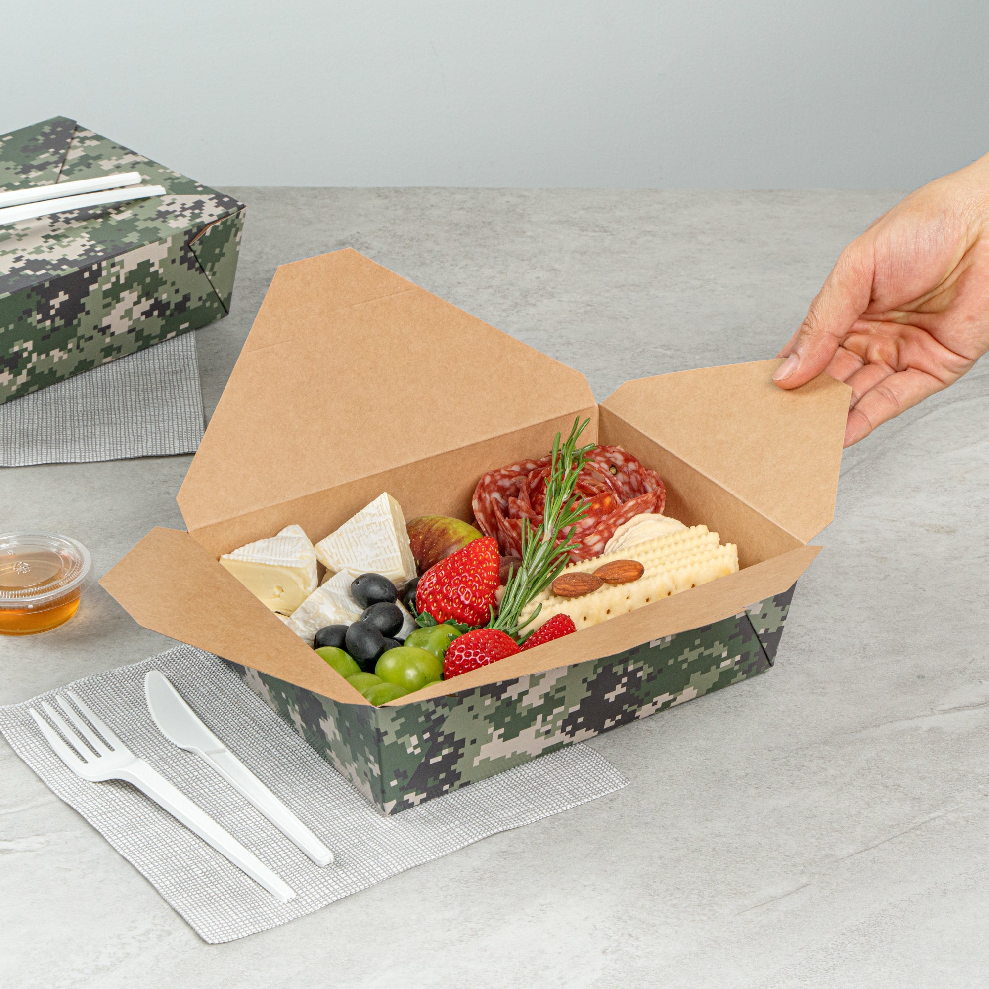 71 OZ RECTANGLE CAMOUFLAGE PAPER #3 BIO BOX TAKE OUT CONTAINER