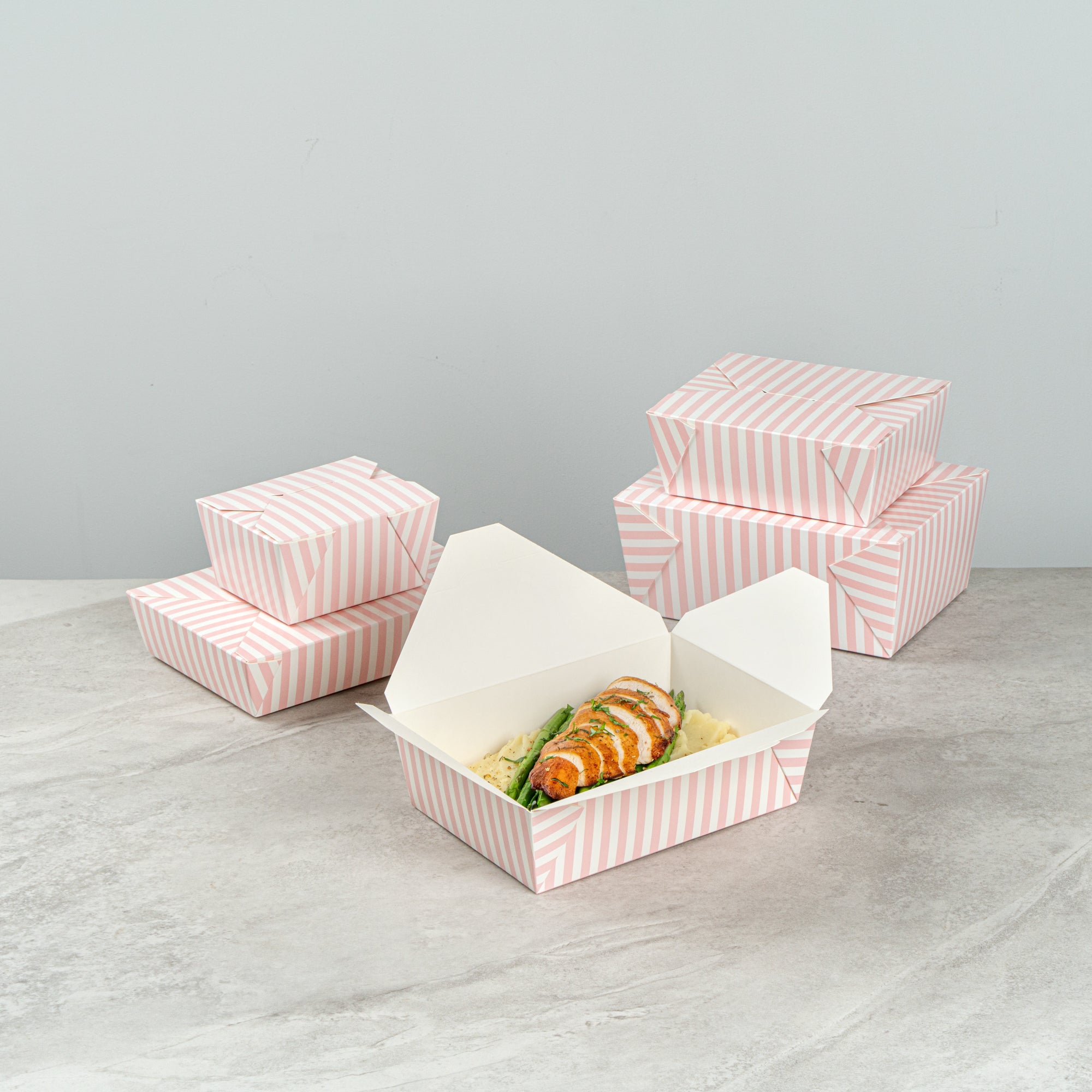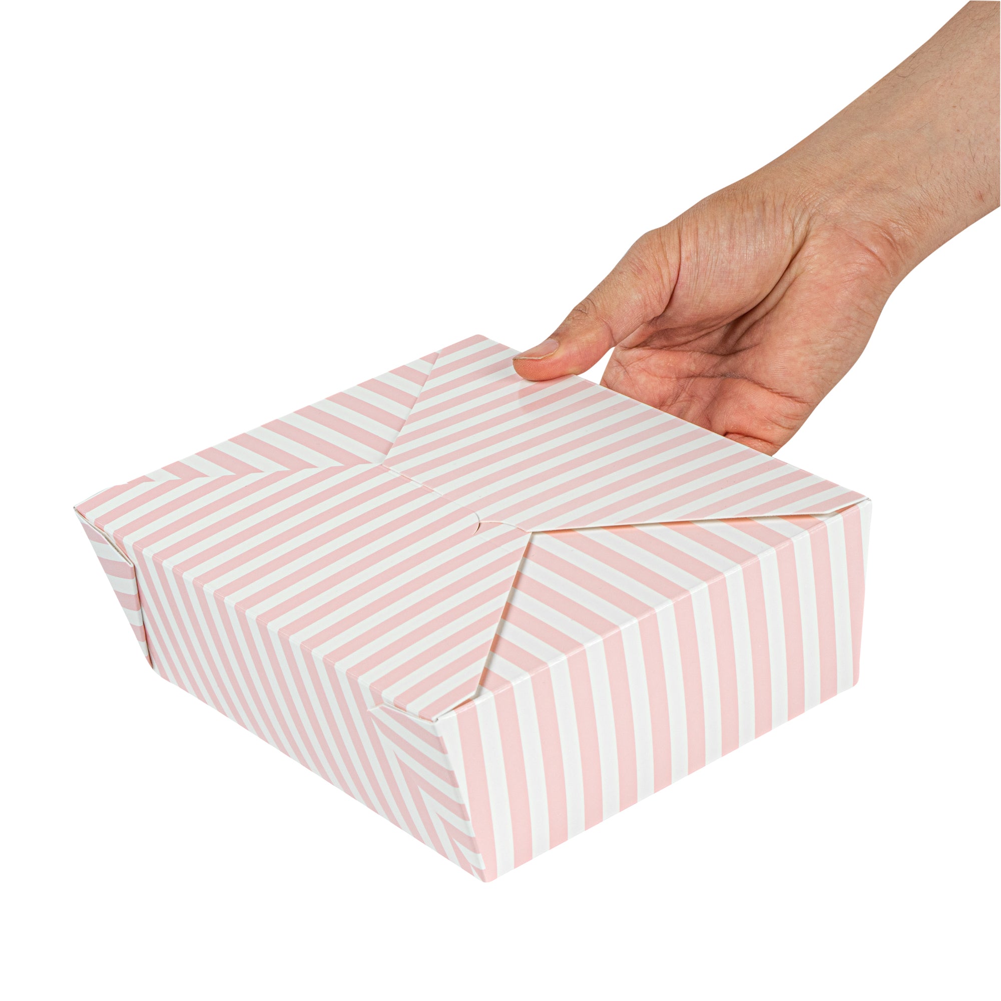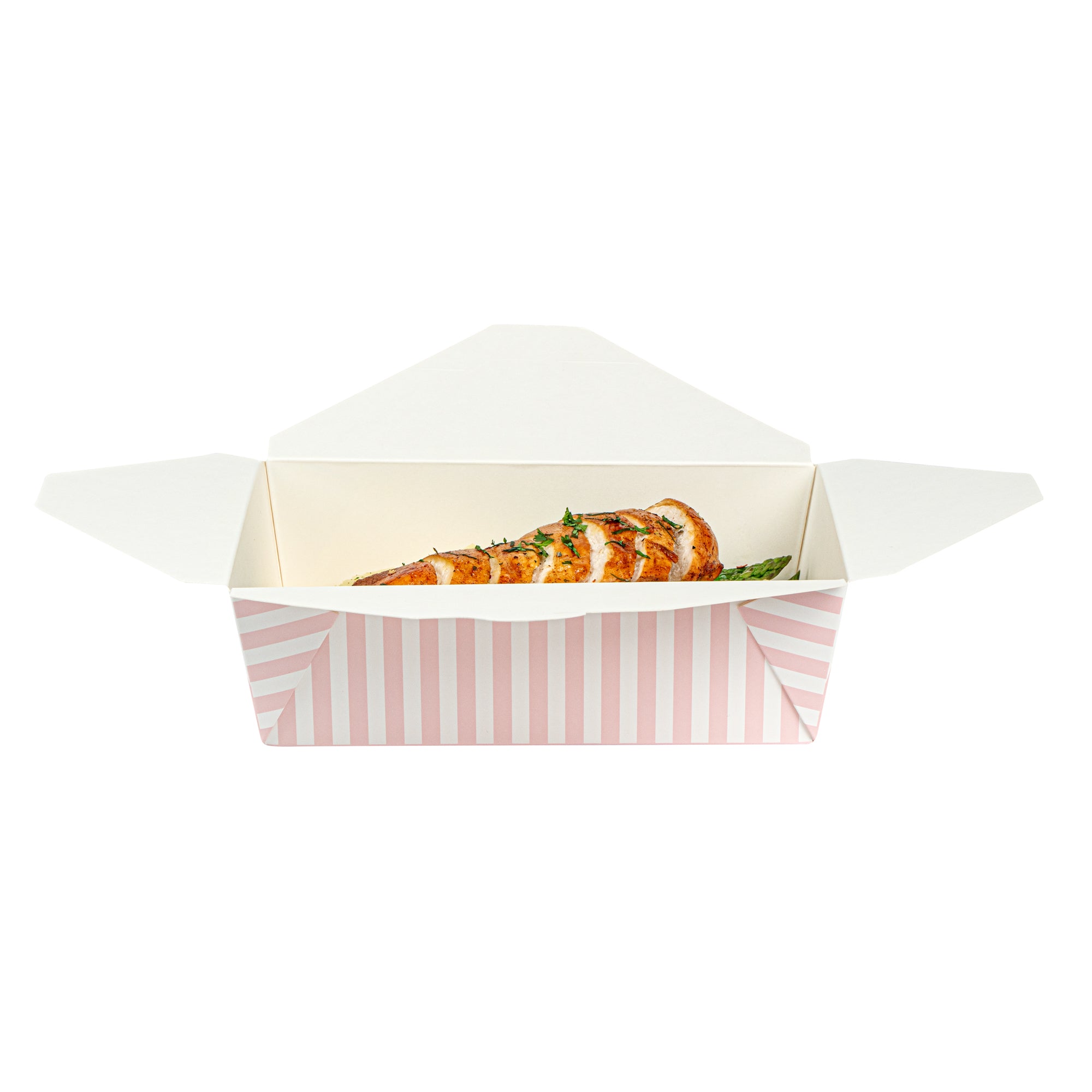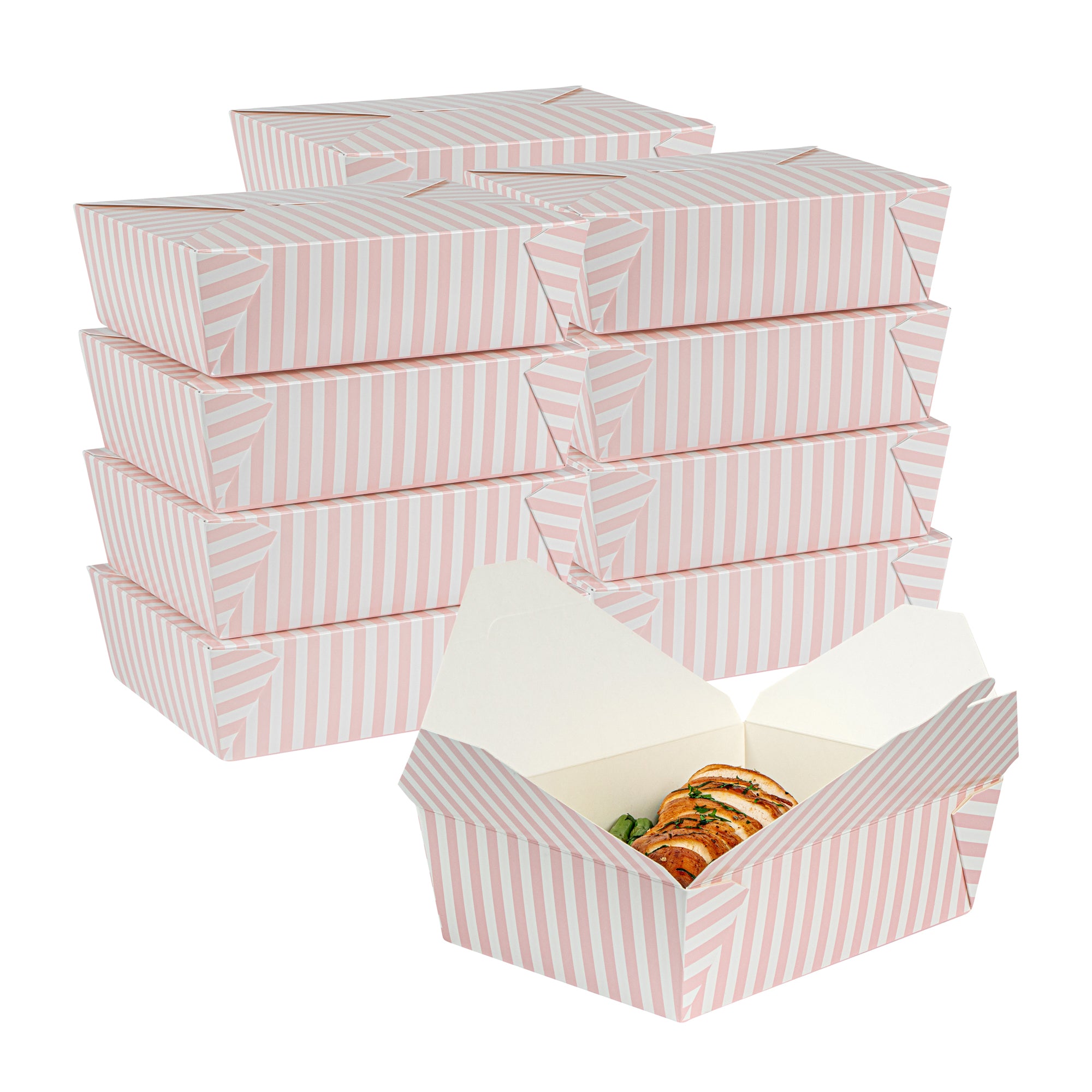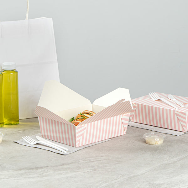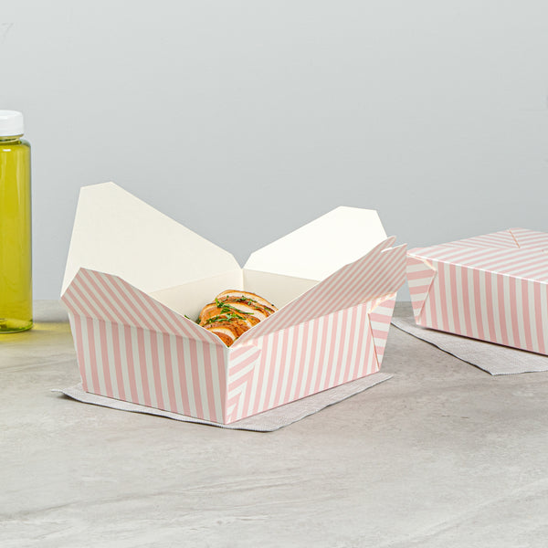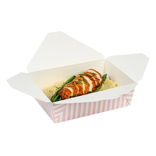 71 OZ PINK AND WHITE STRIPE PAPER #3 BIO BOX TAKE OUT CONTAINER
