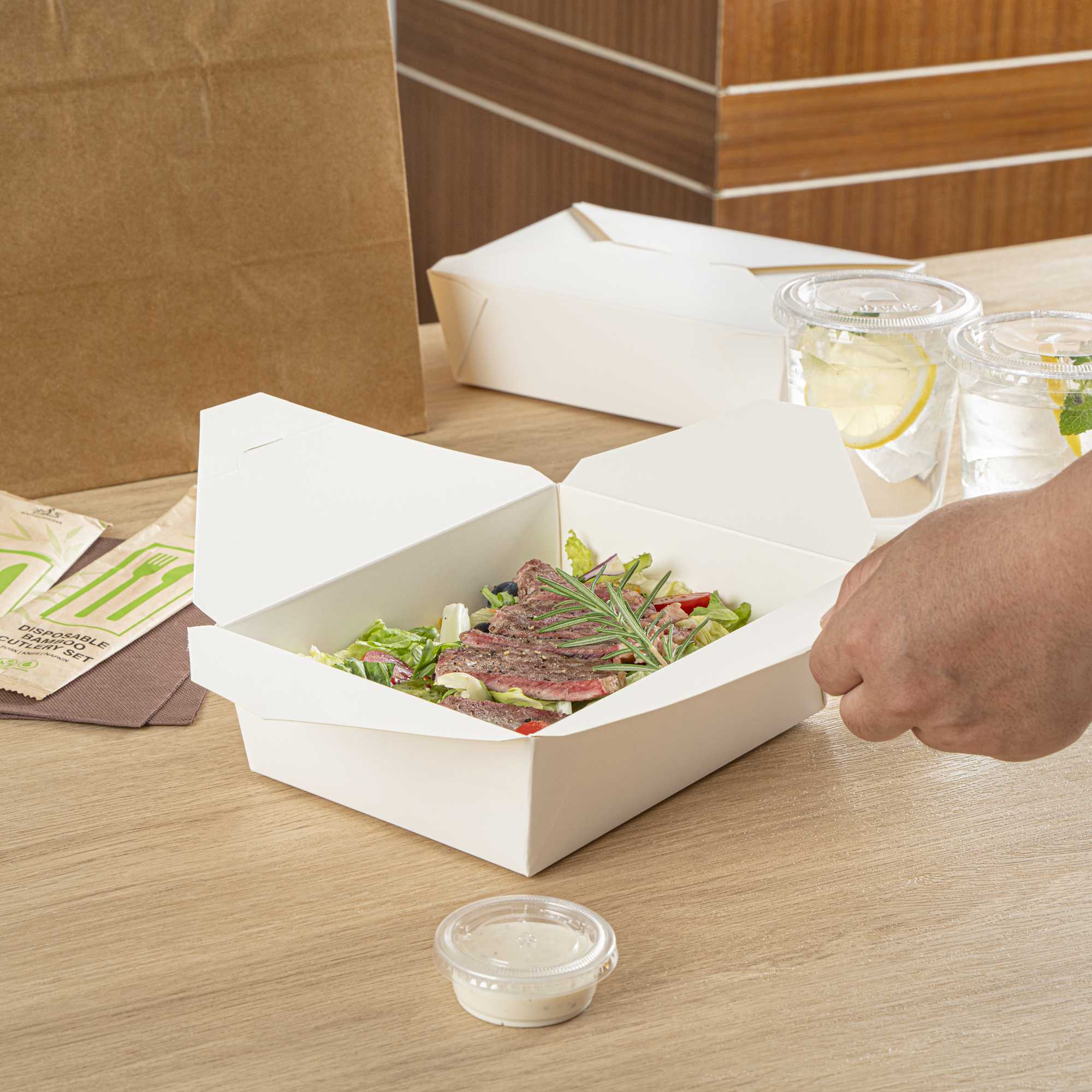 These premium take out boxes remove the hassle of rigorous washing after events, as they are disposable. Serve the convenience of easy cleanup with delicious food.