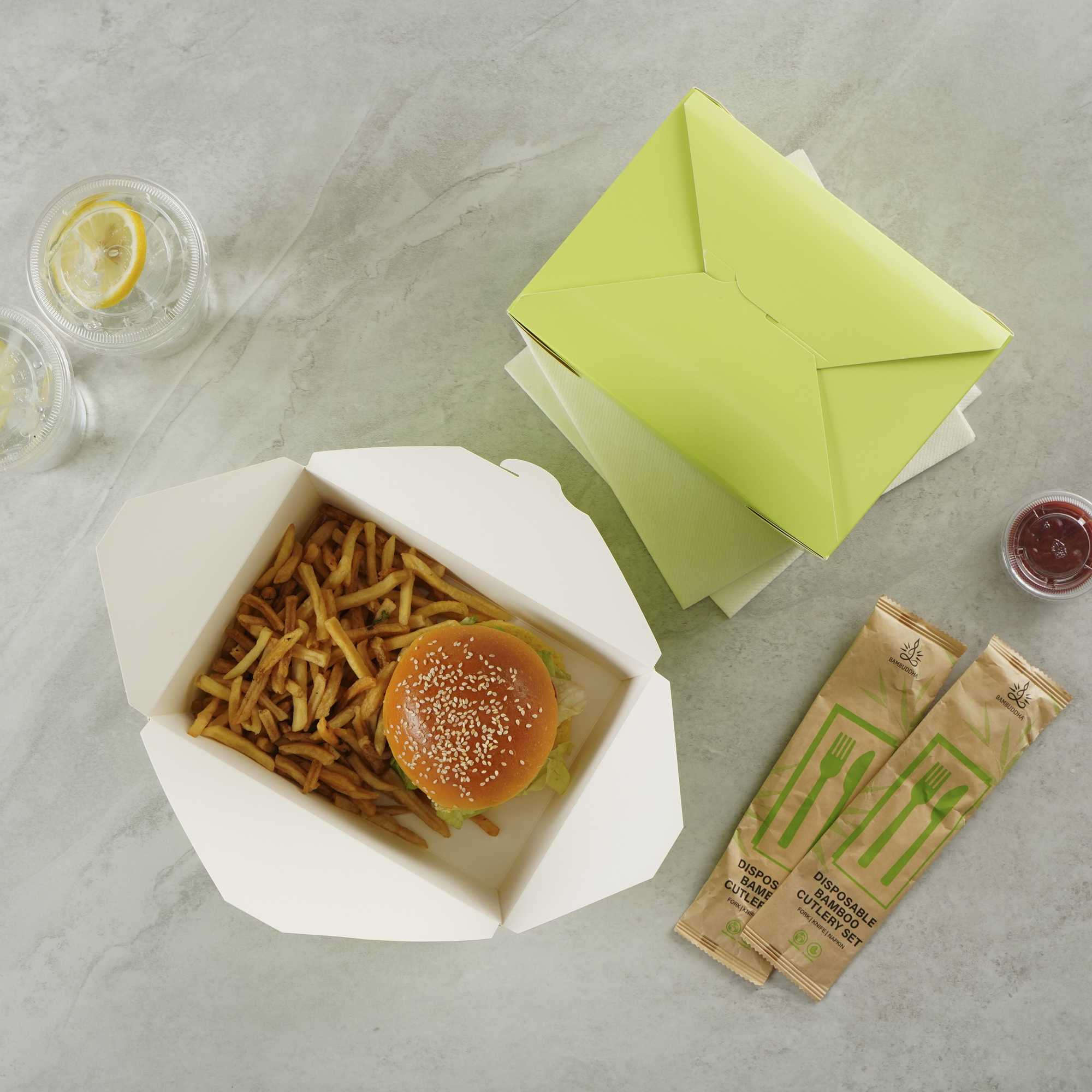 These premium take out boxes remove the hassle of rigorous washing after events, as they are disposable. Serve the convenience of easy cleanup with delicious food.