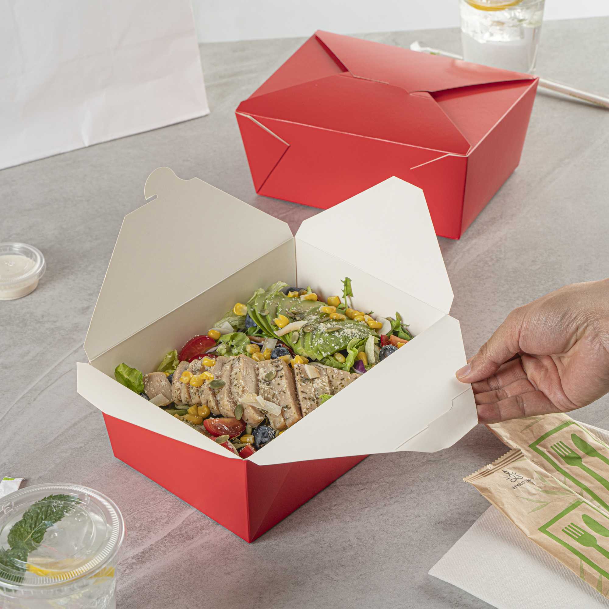 98 OZ RECTANGLE RED PAPER #4 BIO BOX TAKE OUT CONTAINER