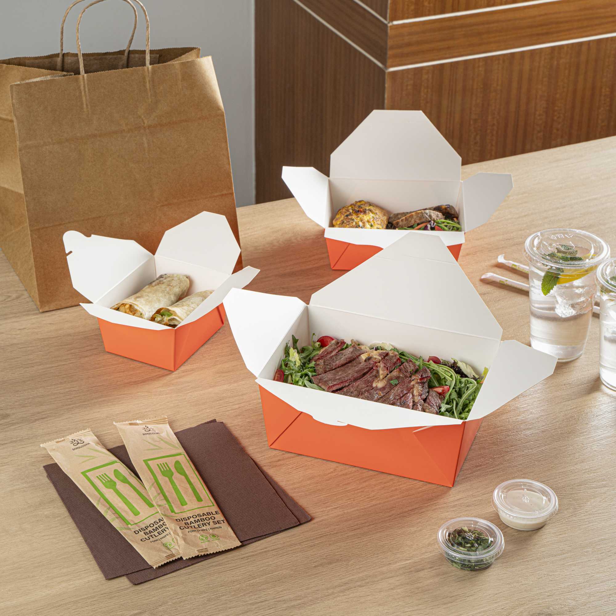 These premium take out boxes remove the hassle of rigorous washing after events, as they are disposable. Serve the convenience of easy cleanup with delicious food.
