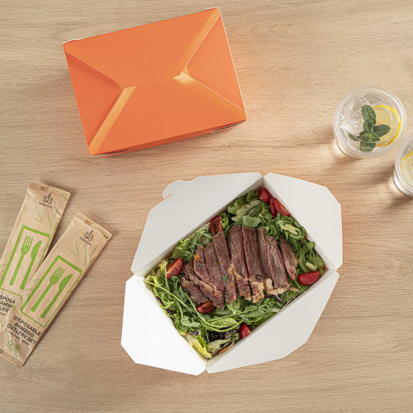 Providing an unmatched level of ease and portability, these bio boxes ensure a secure lock with their built-in tab lock, making for durable take out boxes. Their uniquely foldable design allows for easy storage, on-the-go functionality, and a minimalistic approach.