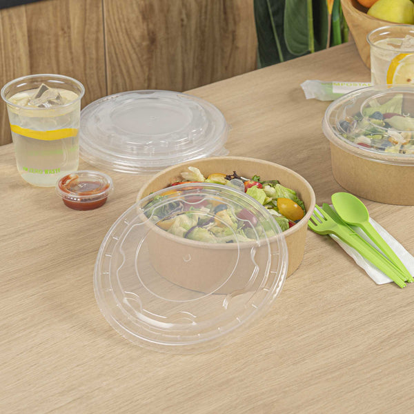 Keep your food orders secure with our Bio Tek Clear Plastic Take Out Container Lids. These plastic lids pair perfectly with our collection of matching Bio Tek containers and form a tight-fitting seal to keep contents intact during transportation. Featuring a crystal-clear finish, these round lids allow for quick and easy visibility of the contents without having to open the container. Crafted from PP plastic, these lids for food containers are heat-resistant and can withstand temperatures up to 248F, perfect for covering hot soups and dishes. Designed to be disposable, these container lids can be discarded after use and help shorten your cleanup time. To reduce your carbon footprint, these disposable lids are recyclable and ideal for eco-conscious foodservice establishments. Measuring 7.25 inches in diameter, these clear lids offer ample coverage. Sold in a 50 count box. Containers are available and sold separately.