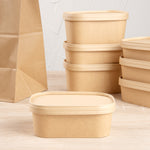 Allow customers to take their dishes to go with our Bio Tek Oval Kraft Paper Lids. Combine these lids with our compatible paper containers (SKU: RWA1053K, RWA1052K, RWA1051K, and RWA1050K) for a mess-free way to transport snacks and sides. Designed to create a tight-fitting seal, these paper lids keep your foods securely contained to avoid cleaning up spills. Featuring a kraft brown finish, these paper container lids seamlessly match with containers to give your take out presentations a rustic look. Constructed from sturdy paper, these brown lids are recyclable to shorten the cleaning process at your catered events. These disposable lids measure 6.9 inches long by 4.8 inches wide. Sold in a 100 count box. Containers are available and sold separately.