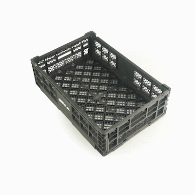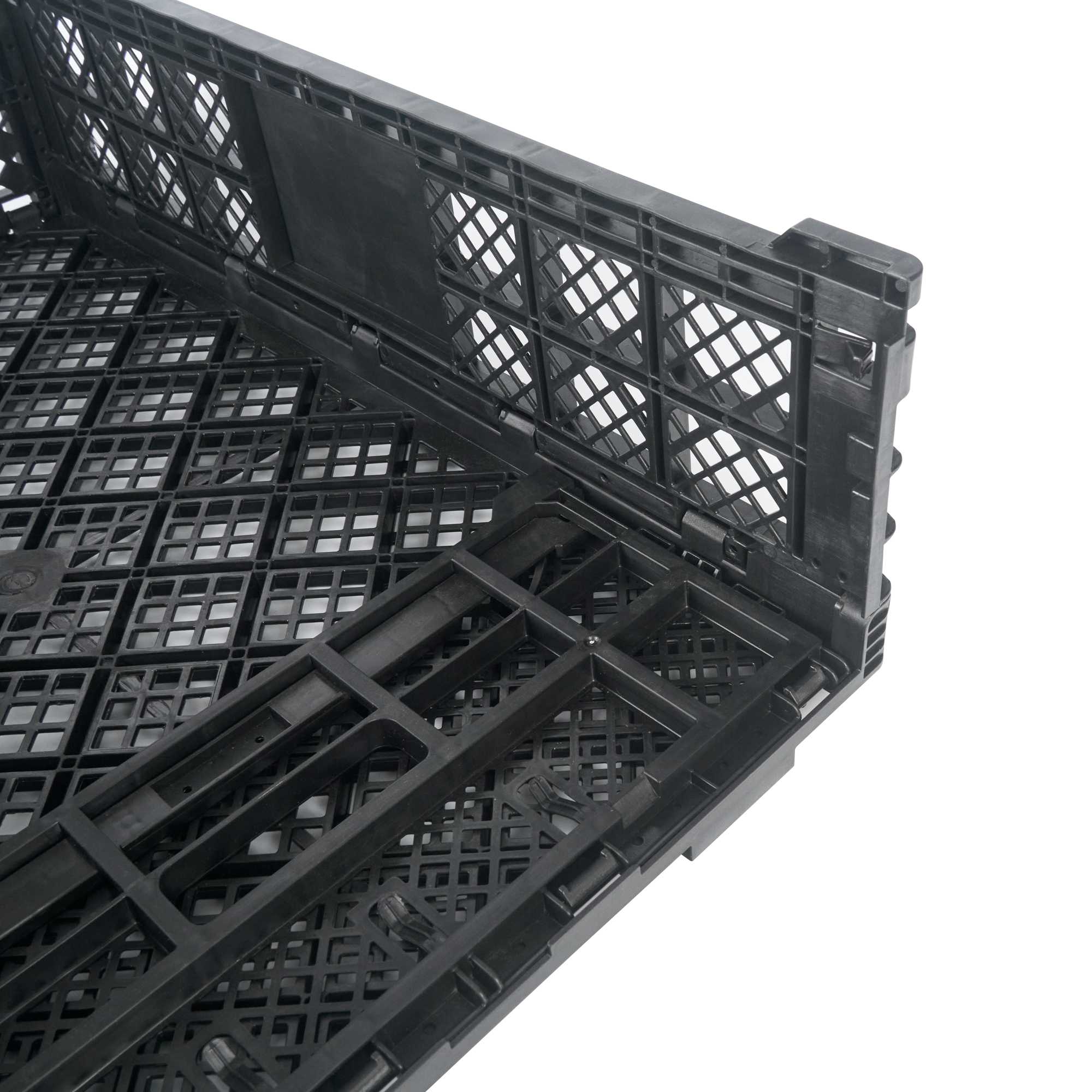 RECTANGLE BLACK PLASTIC COLLAPSIBLE CRATE - VENTED, STACKABLE