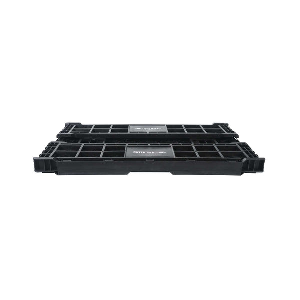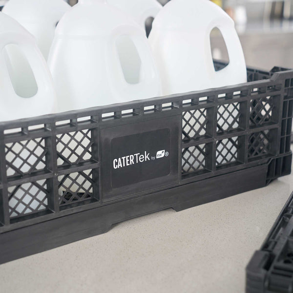 Optimize storage with versatile collapsible storage solutions. The Cater Tek Black Plastic Collapsible Storage Bin provides durable polypropylene construction, offering reliable support for heavy loads and ensuring long-lasting usability in foodservice environments. With a stackable storage crate design, these bins facilitate efficient kitchen organization, maximizing limited space. The vented plastic crate features vented sides, promoting airflow that keeps produce fresh for longer periods, a critical advantage for maintaining the quality of fresh ingredients. Its collapsible design saves space in storage and transport, making it an ideal choice for catering businesses looking to streamline operations. Measuring 23.6 inches in length by 15.7 inches in width by 6.6 inches in height, this bin is perfectly suited for grocery store produce racks to display bulk items effectively. Each order includes 10 Cater Tek Black Plastic Collapsible Storage Bins.