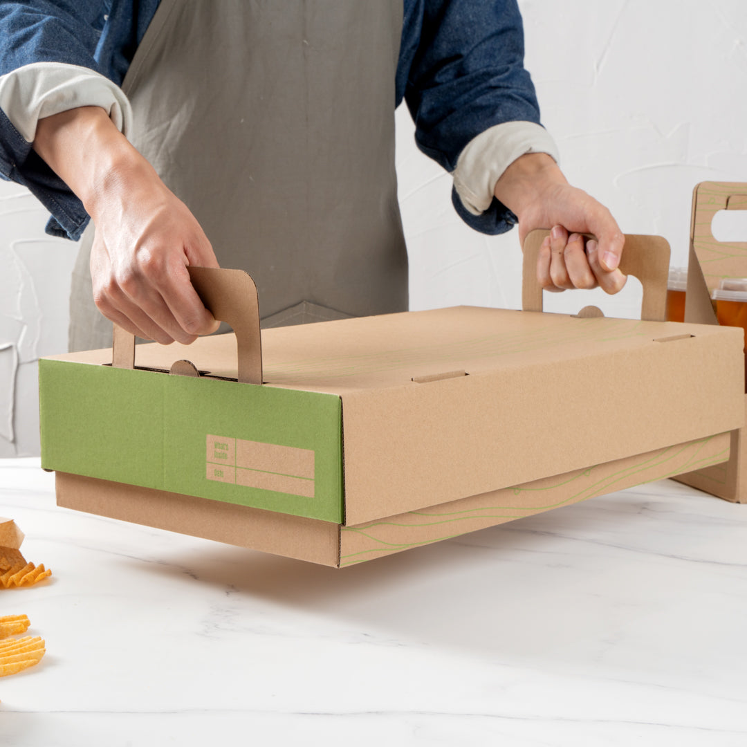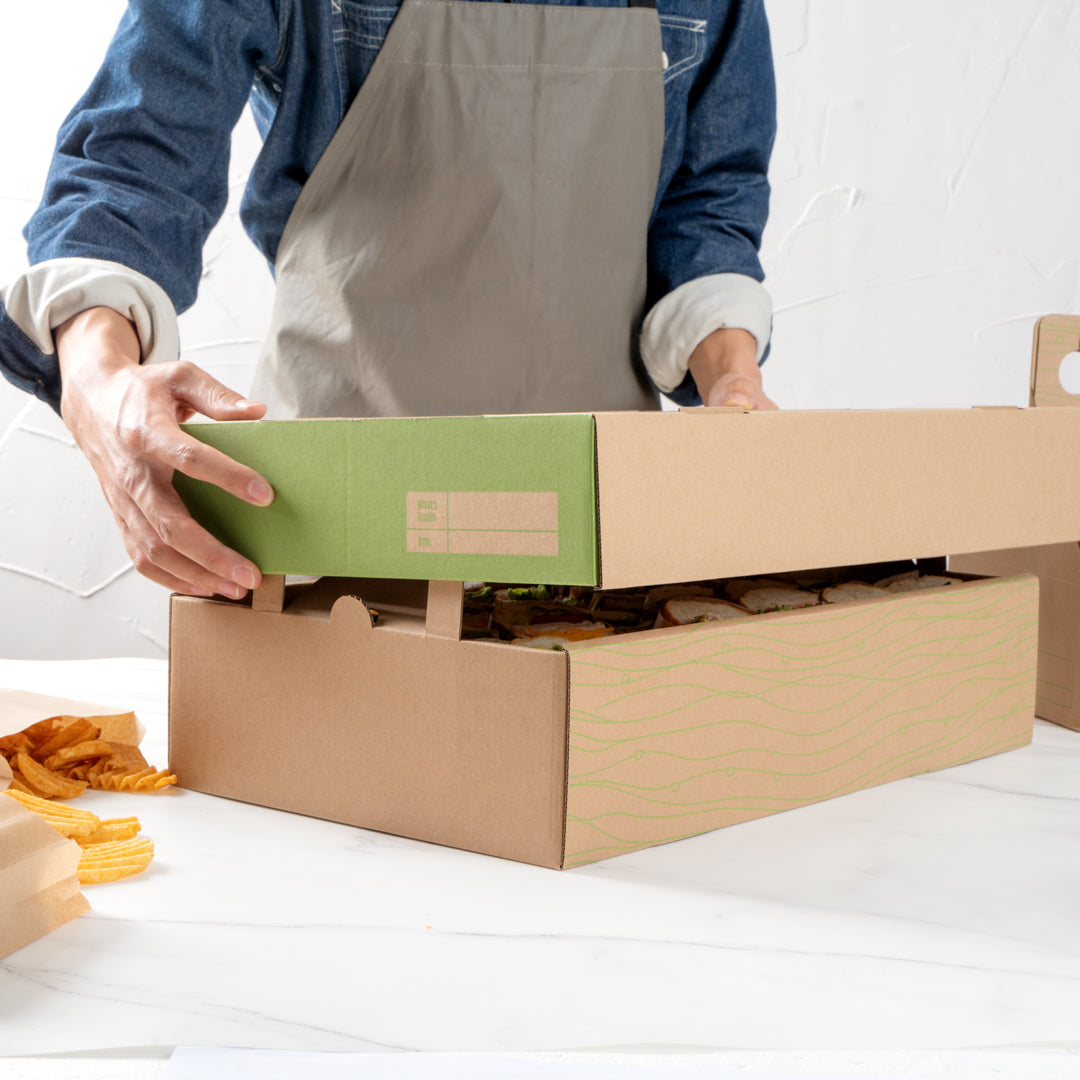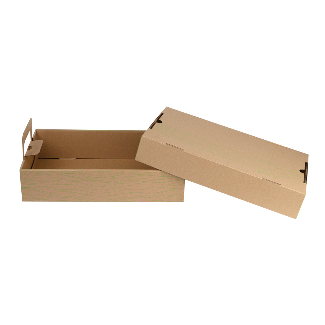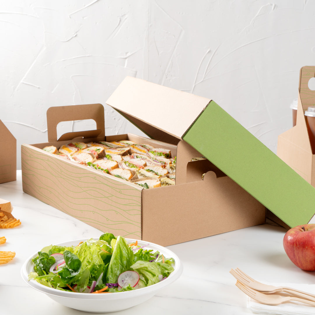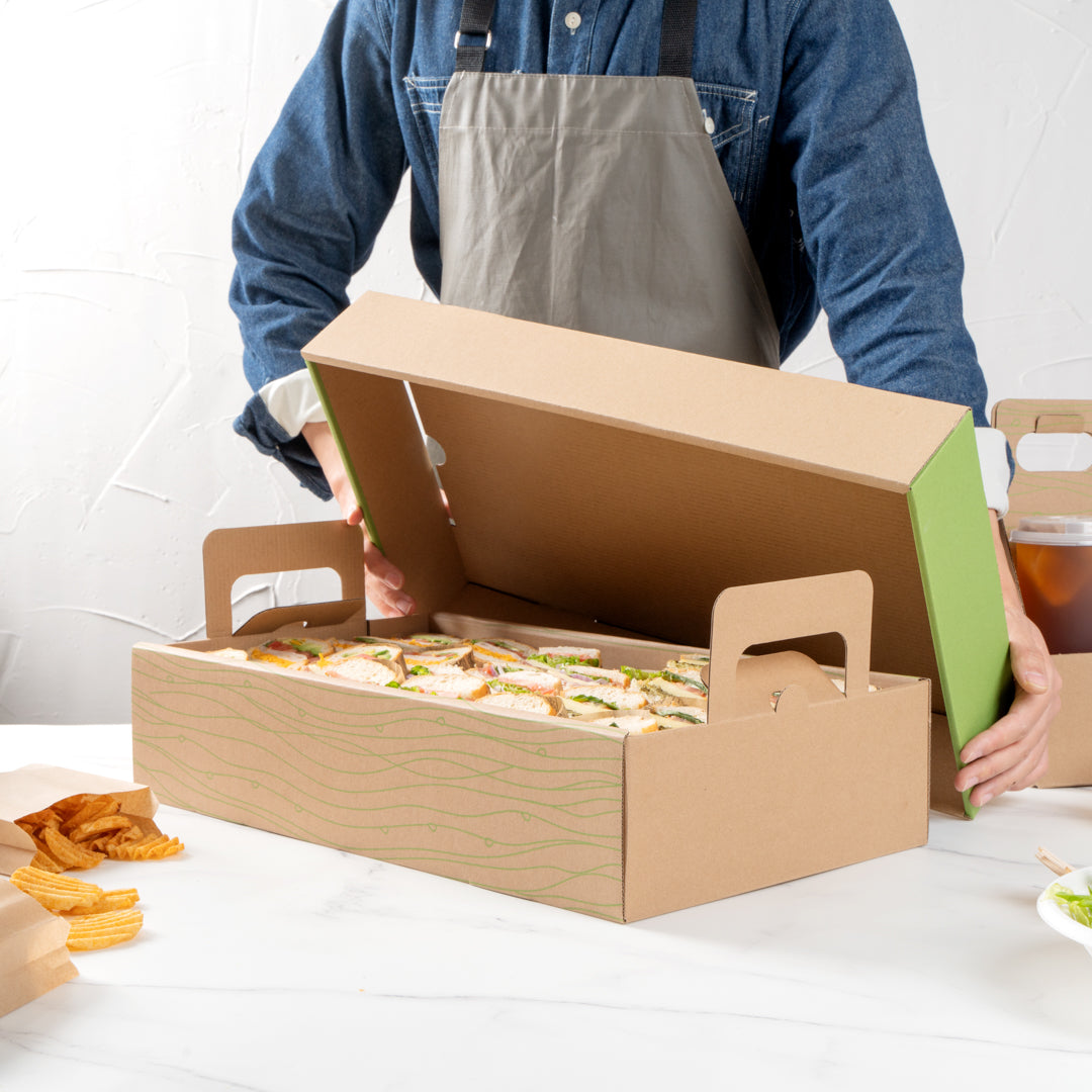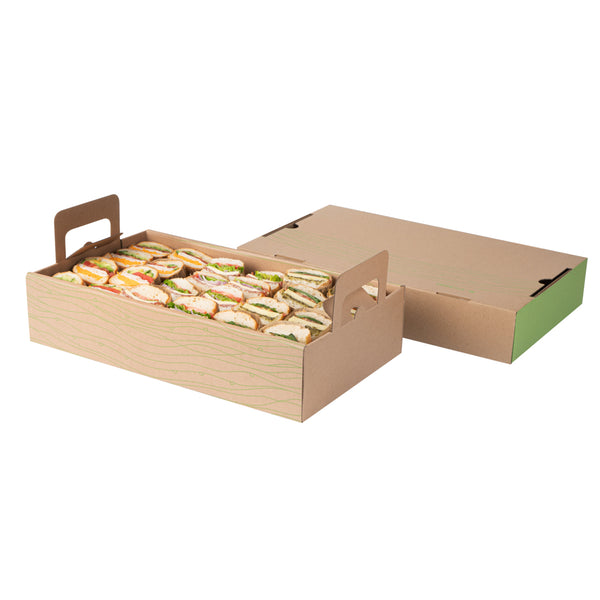 RECTANGLE KRAFT AND GREEN PAPER CATERING TRAY