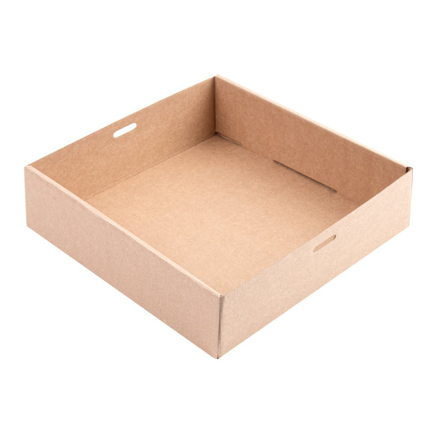 Ensure secure transport with the Cater Tek Kraft Tab-Lock Catering Box. Featuring a reliable tab-lock mechanism, this catering box effectively secures snacks and treats during foodservice transport, making it an essential tool for caterers. Crafted from grease-resistant paper, it prevents oil leaks, ensuring that your food delivery box maintains its integrity in transit. The window lid provides a sneak peek of meals, allowing customers to view their gourmet selections without opening the box, which enhances presentation and customer satisfaction. Measuring 9.02 inches in length, 8.98 inches in width, and 2.36 inches in height, this disposable food box accommodates a variety of meal sizes. Its paper construction supports both hot and cold food items while being recyclable, aligning with eco-friendly practices in the foodservice industry. Each order includes 100 Cater Tek Kraft Tab-Lock Catering Boxes.