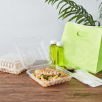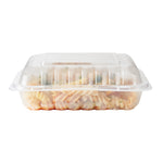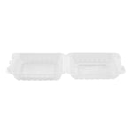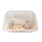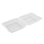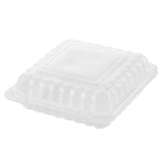 Pack yummy sandwiches with our Chef 101 40-ounce Square Clear Plastic Clamshell Containers. For maximum convenience, these to go containers are microwave-safe, enabling customers to heat their meals effortlessly. Featuring a built-in hinged lid, these to go boxes form a secure seal, providing a secure seal for a mess-free take out solution. The clear finish of these take out containers expertly showcases the contents, making them perfect for displaying your culinary creations. Crafted from durable plastic, these clamshell containers are ideal for serving both hot and cold dishes. For added versatility, these carry out containers are freezer-safe, making them perfect for storing leftovers. These take out boxes are disposable and can be discarded after use, offering the convenience of easy cleanup after use. To offer an environmentally-friendly food serving container, these plastic take out containers are recyclable and help minimize carbon footprint. Measuring 9 inches in length by 9 inches in width by 3 inches in height, these takeaway containers have a generous capacity of 40 ounces. Sold in a 100 count box.