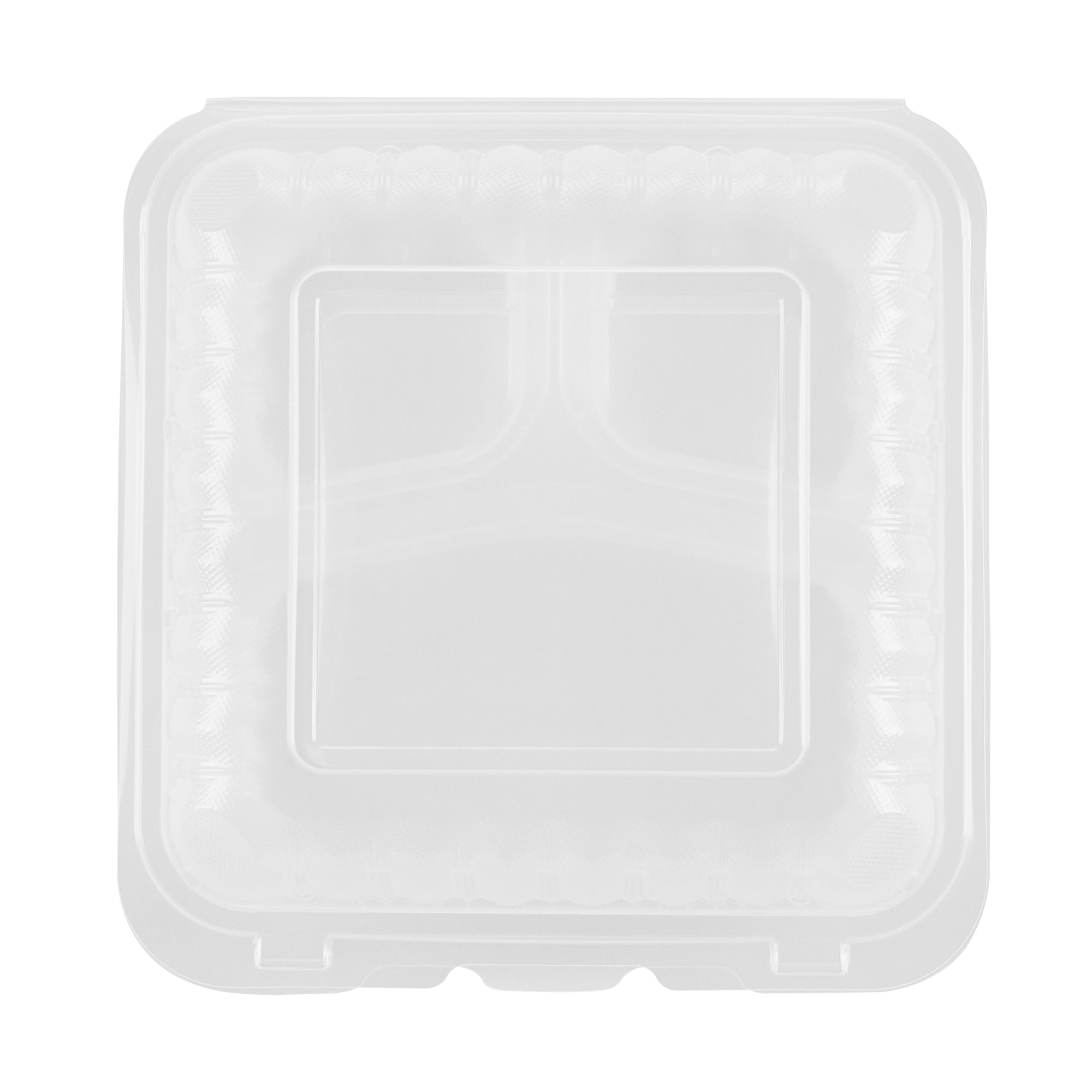 47 OZ SQUARE CLEAR PLASTIC CLAMSHELL CONTAINER - 3 COMPARTMENTS