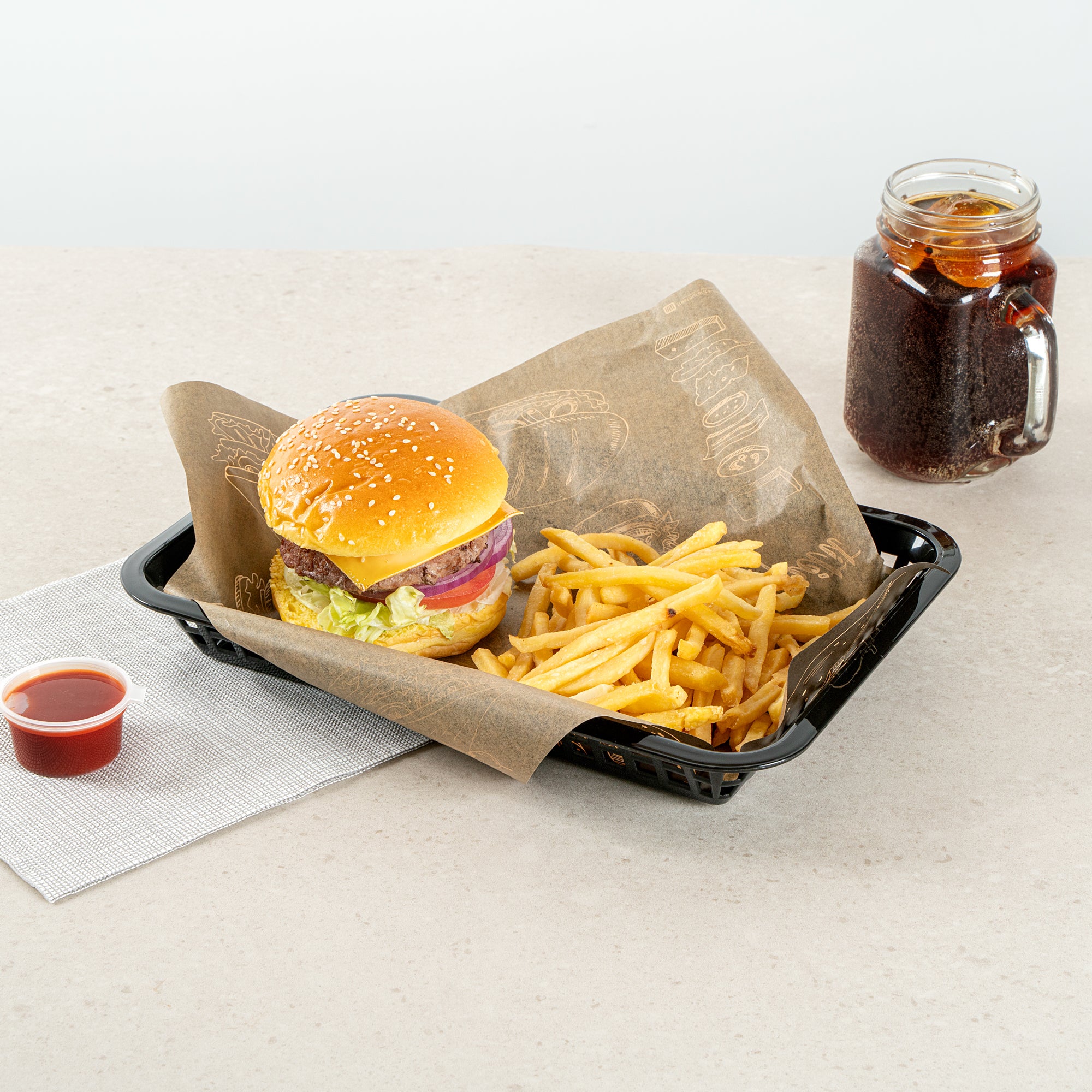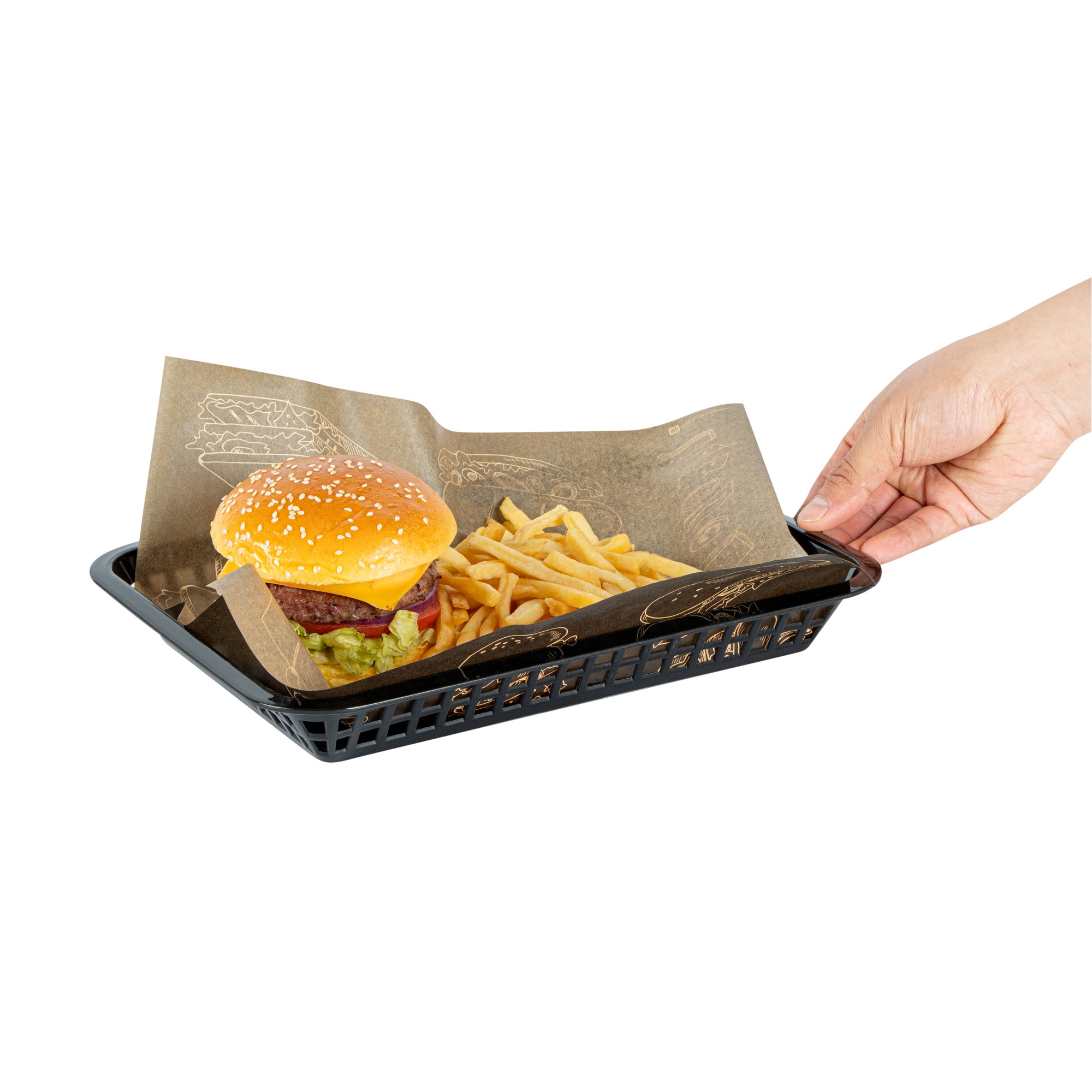 RECTANGLE BLACK PLASTIC FAST FOOD SERVING BASKET