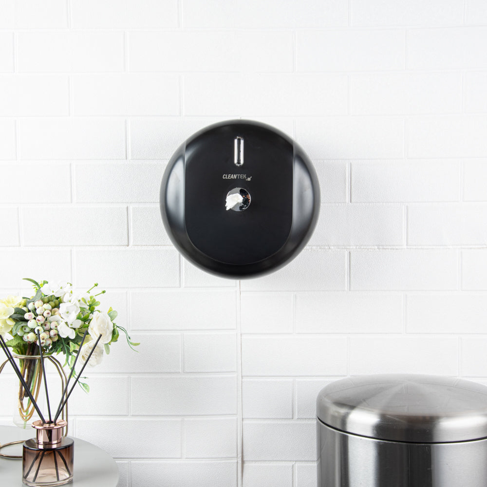 These toilet paper dispensers are available in either black or white colors to complement any washroom setting. Perfect for high-traffic restrooms or toilets.
